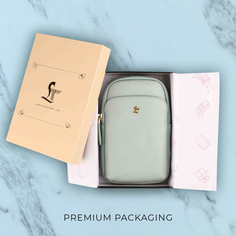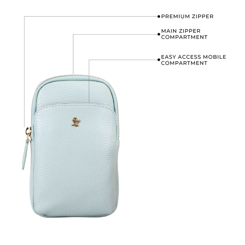 Hydra Mobile Bag for Women | 100% Genuine Leather | Lifetime Service Warranty | Color: Grayish Cyan