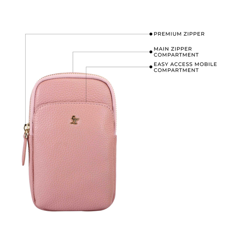 Hydra - Mobile Sling Bag for Women | Genuine Leather Mobile Pouch | Color: Pink, Blue & Peach