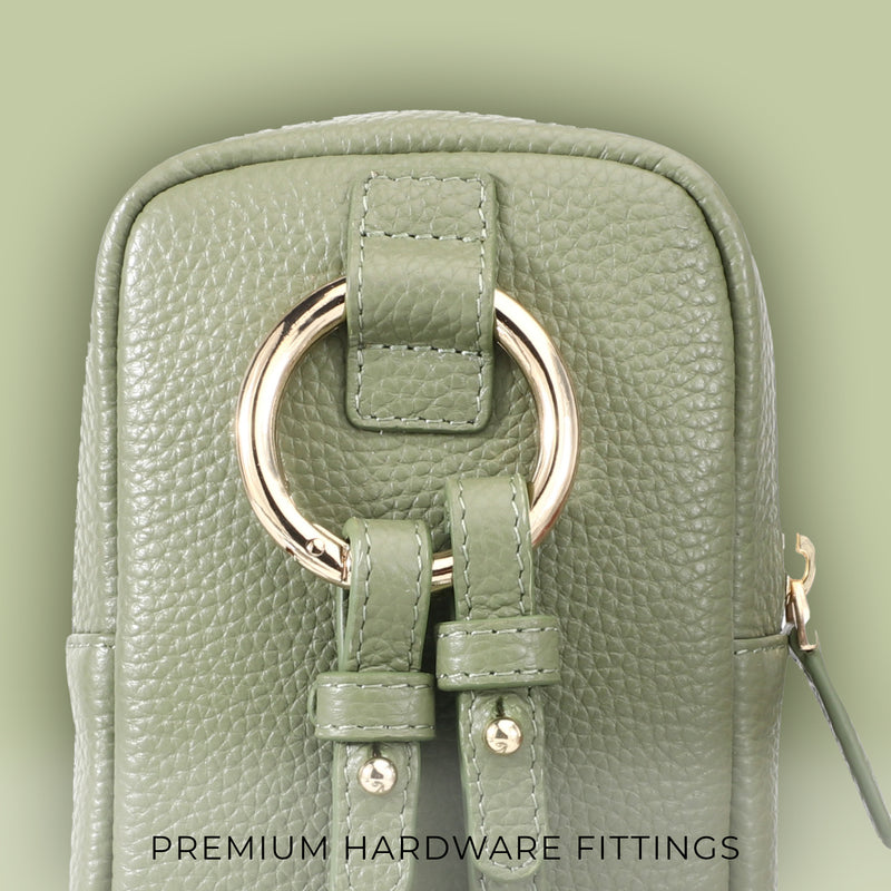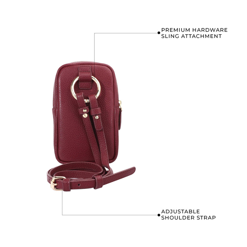 Hydra - Mobile Sling Bag for Women | Genuine Leather Mobile Pouch | Color: Cherry & Green