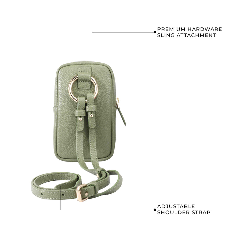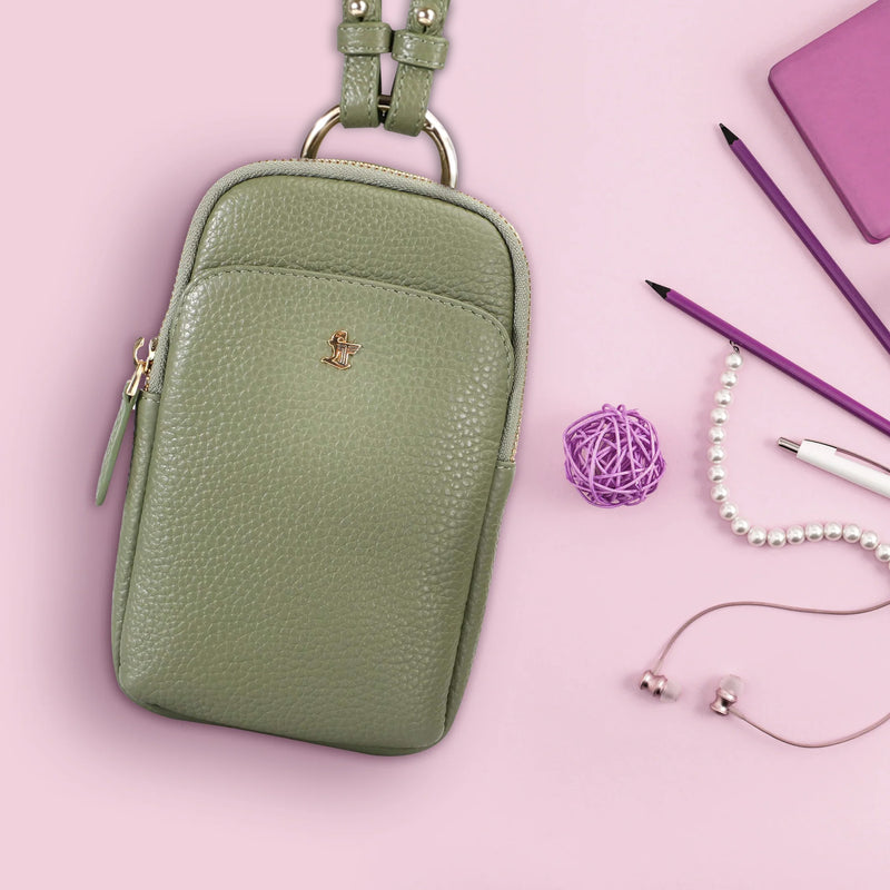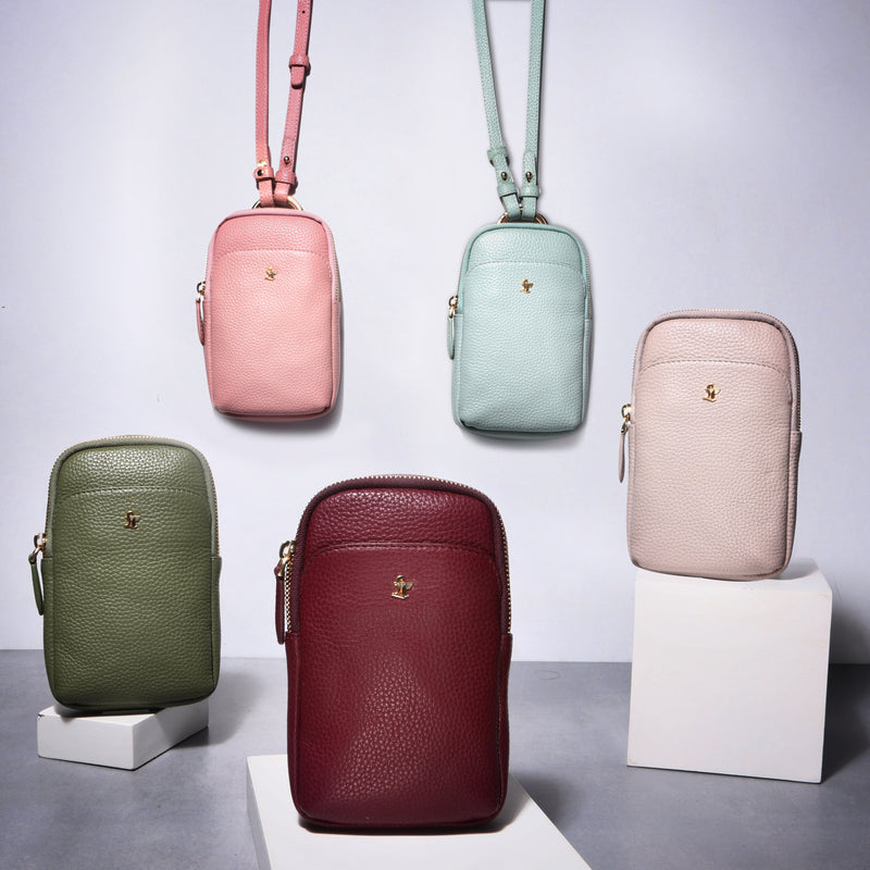Our stylish and functional Hydra Mobile Sling Pouch, designed specifically for womens on the go. Crafted from high-quality genuine leather, this pouch offers both durability and a luxurious look that will elevate any outfit. Perfectly sized for holding essentials such as phone, keys, and cards while keeping your hands free. You can flaunt it any way you want, casually over the shoulder or as a crossbody. Available in stunning pastel shades.