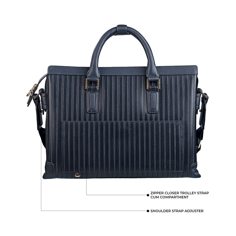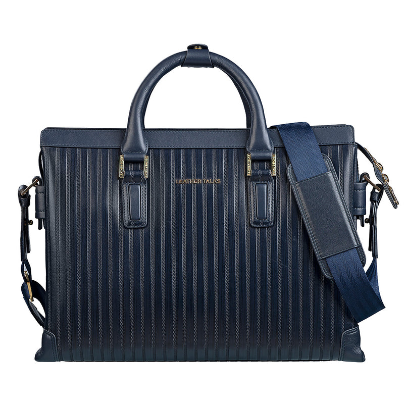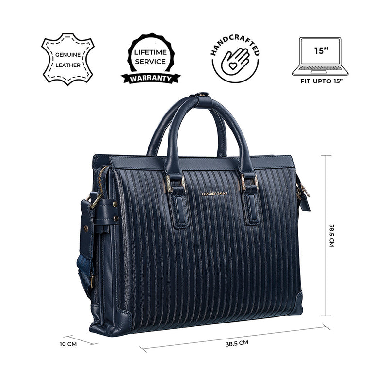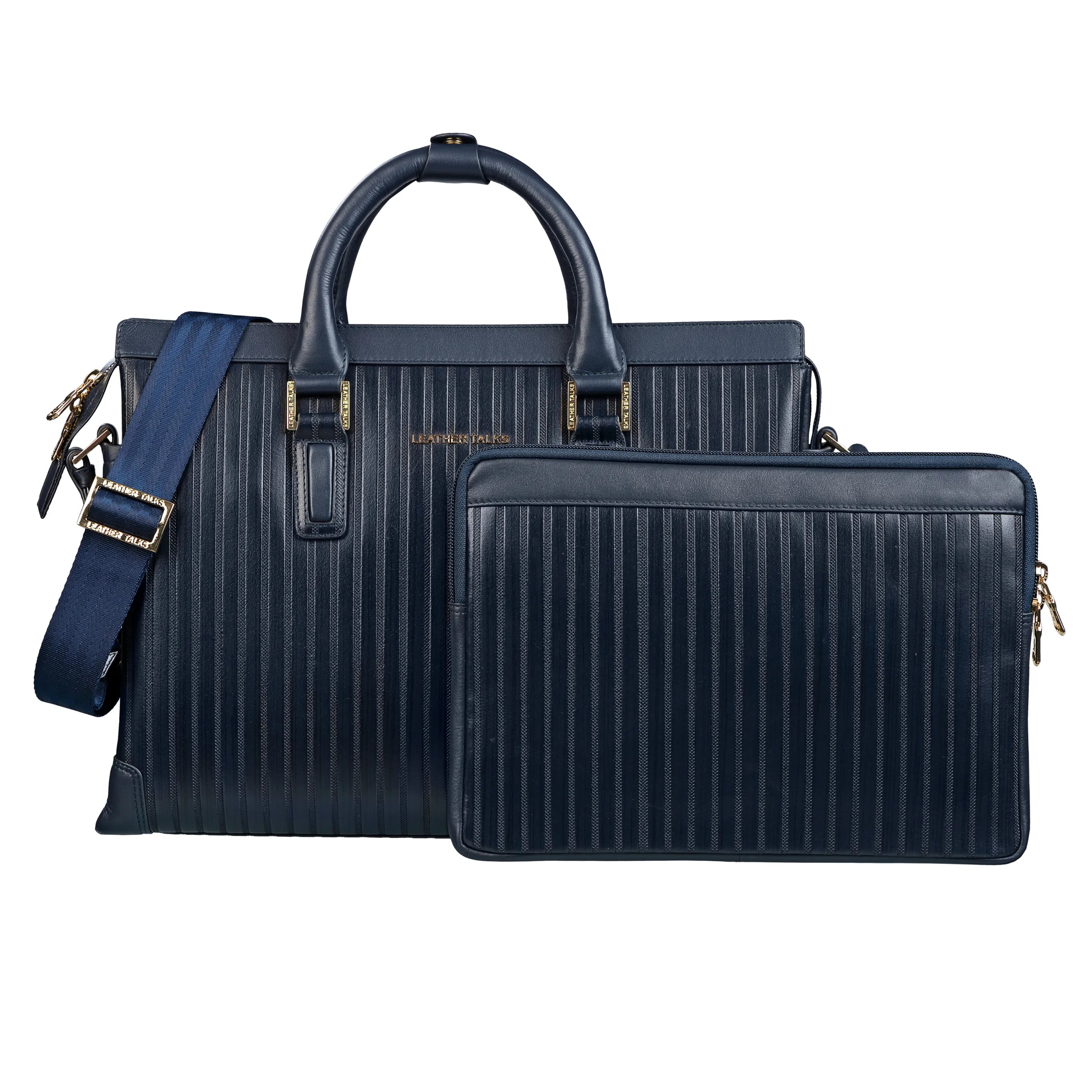 Edgar Italian VT Stripe Luxury Genuine Leather Laptop Bag for Men | Premium Office Folio Briefcase | Executive Business Bag | Color: Navy Blue