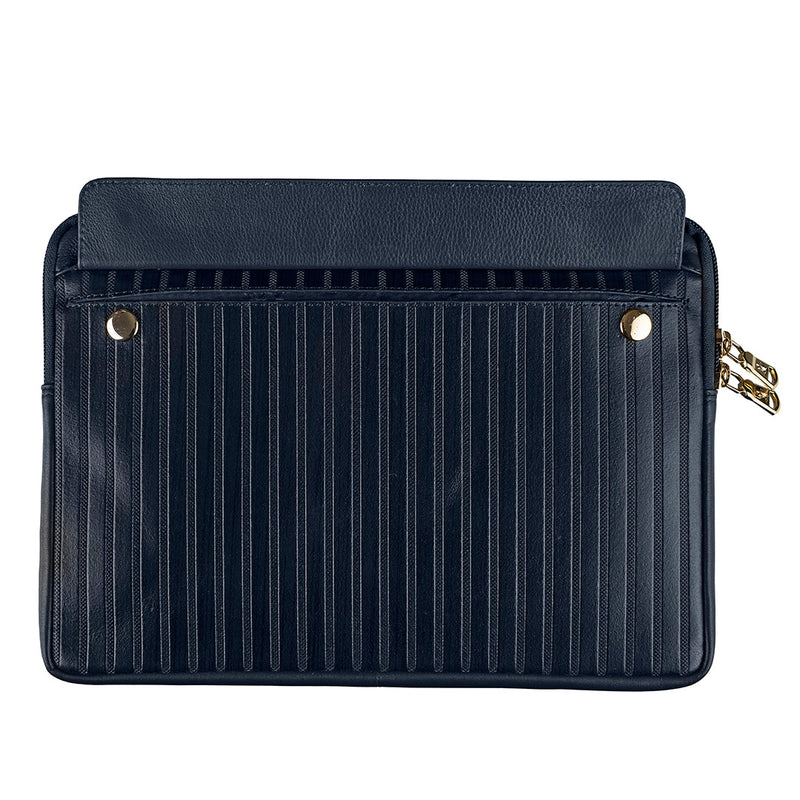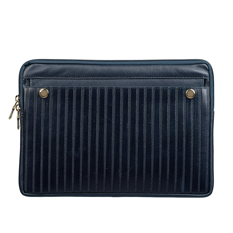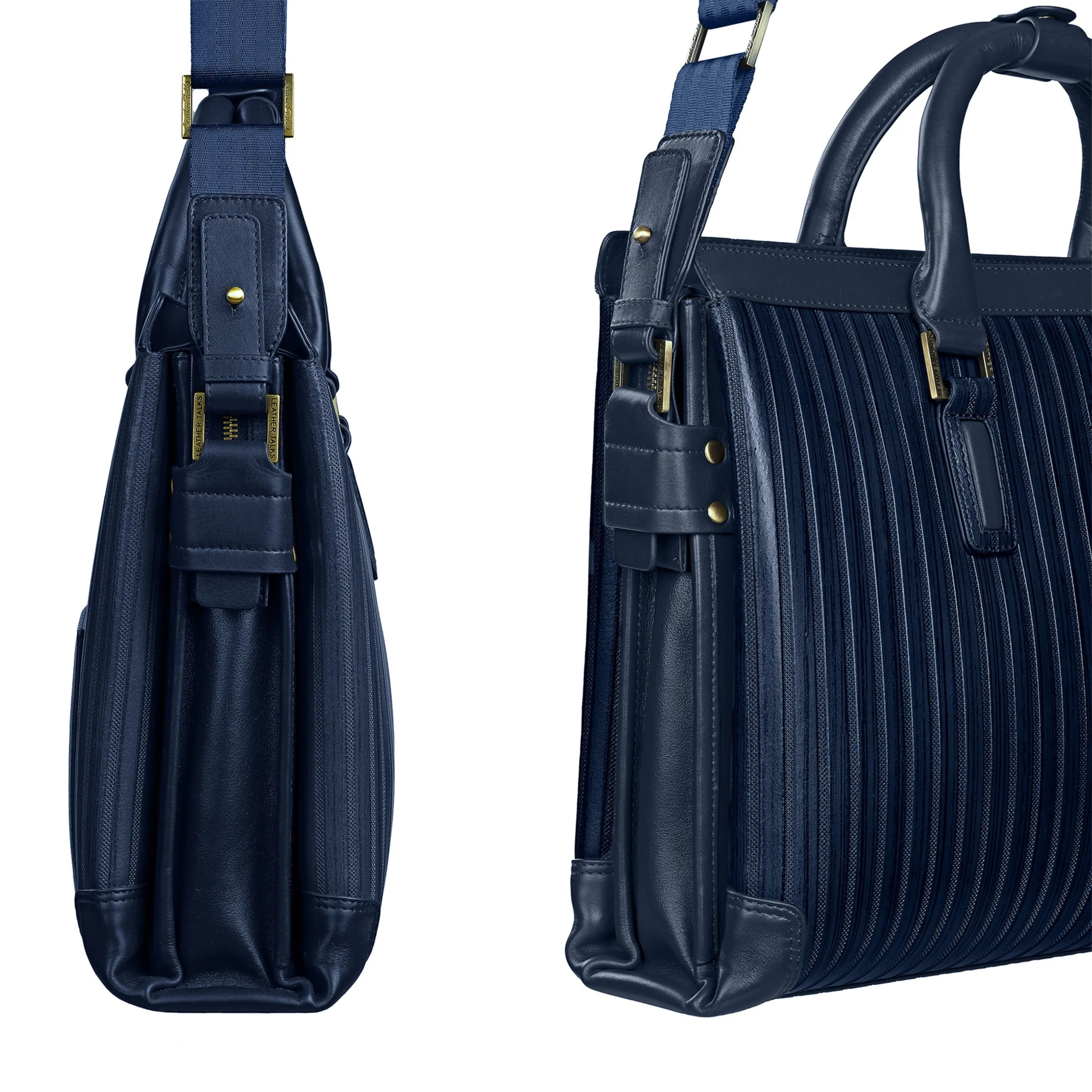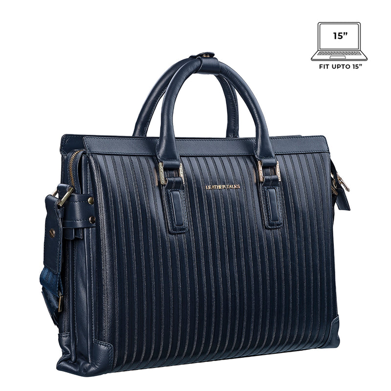 Edgar Italian VT Stripe Luxury Genuine Leather Laptop Bag for Men | Premium Office Folio Briefcase | Executive Business Bag | Color: Navy Blue