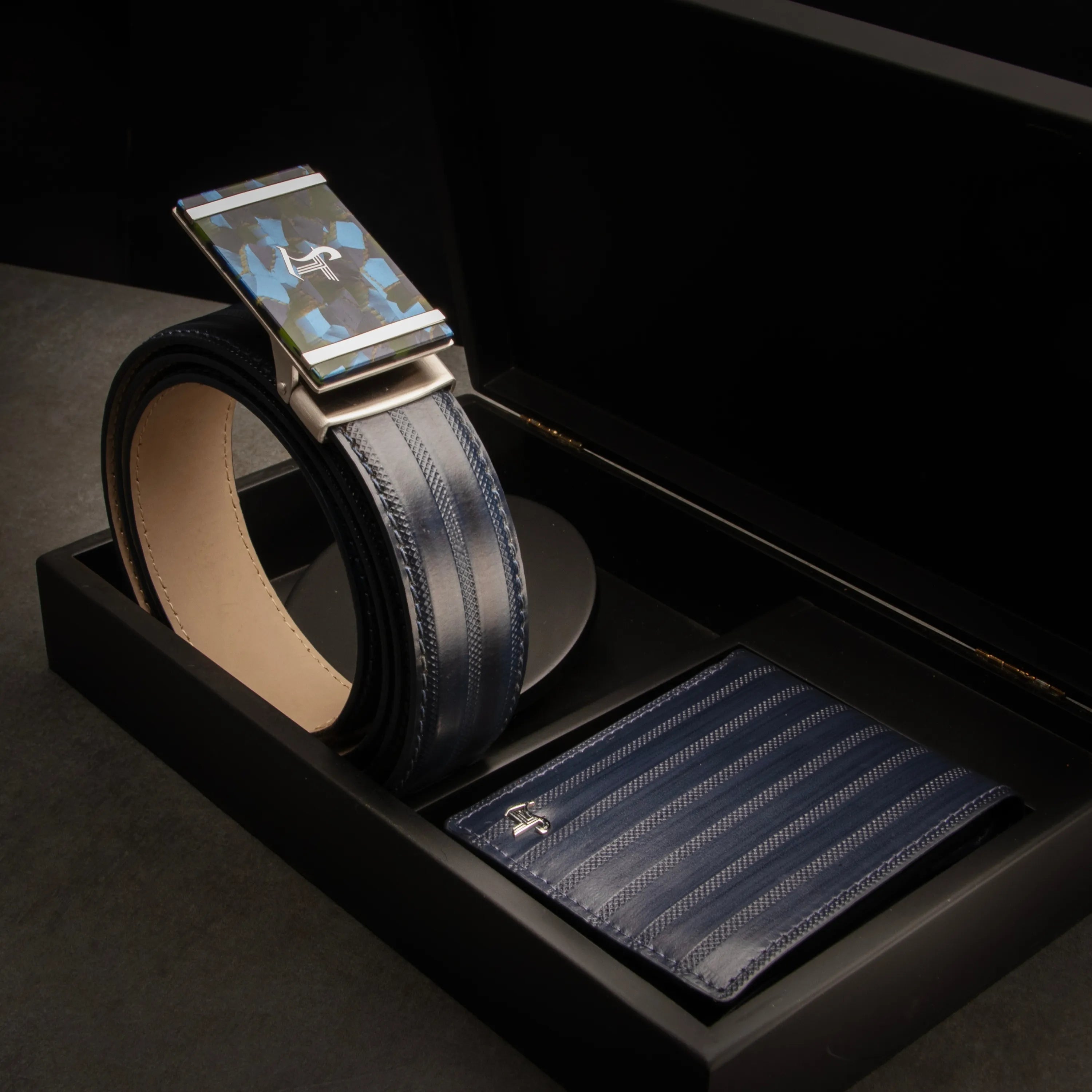 Perfect for both casual and formal occasions, the wallet and belt showcase a refined stripe detail that adds a touch of class. This versatile set is ideal for those with discerning taste, making it a must-have addition to your accessory collection. Embrace timeless sophistication and make a statement with this exquisite leather set!