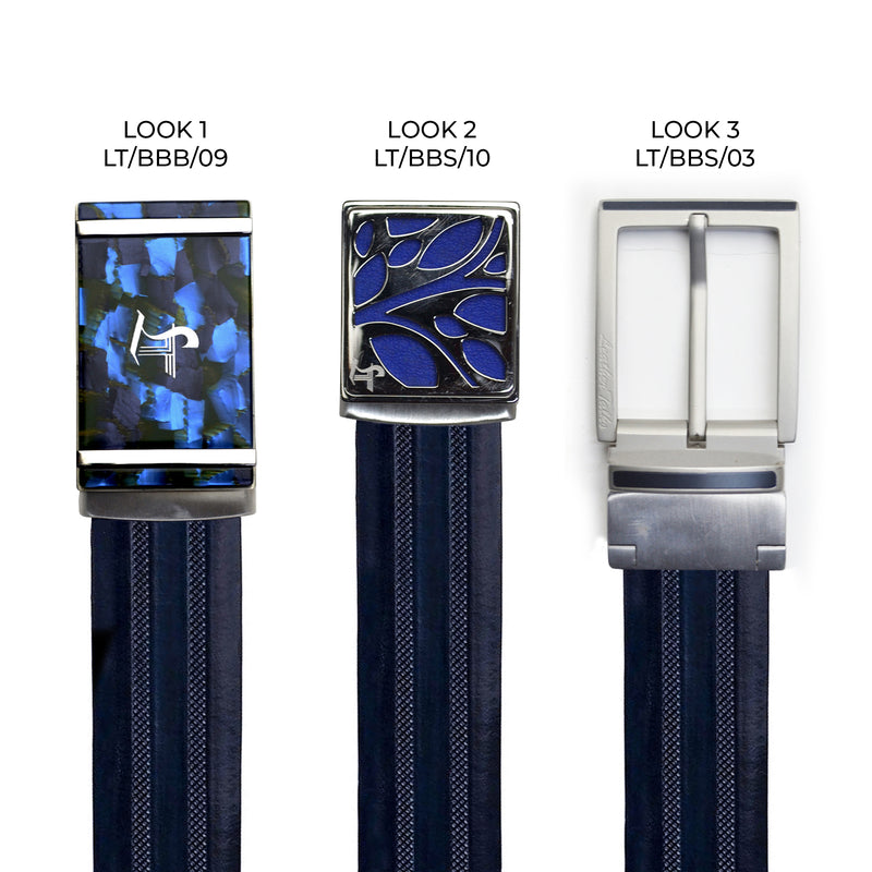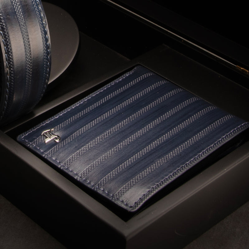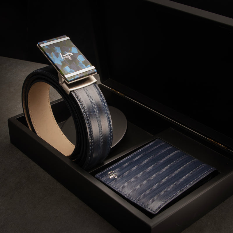 Italian VT Stripe | Genuine Leather Wallet and Belt Gift Set | Wallet and Belt Combo | Plus Size Mens Belts | Colour: Blue