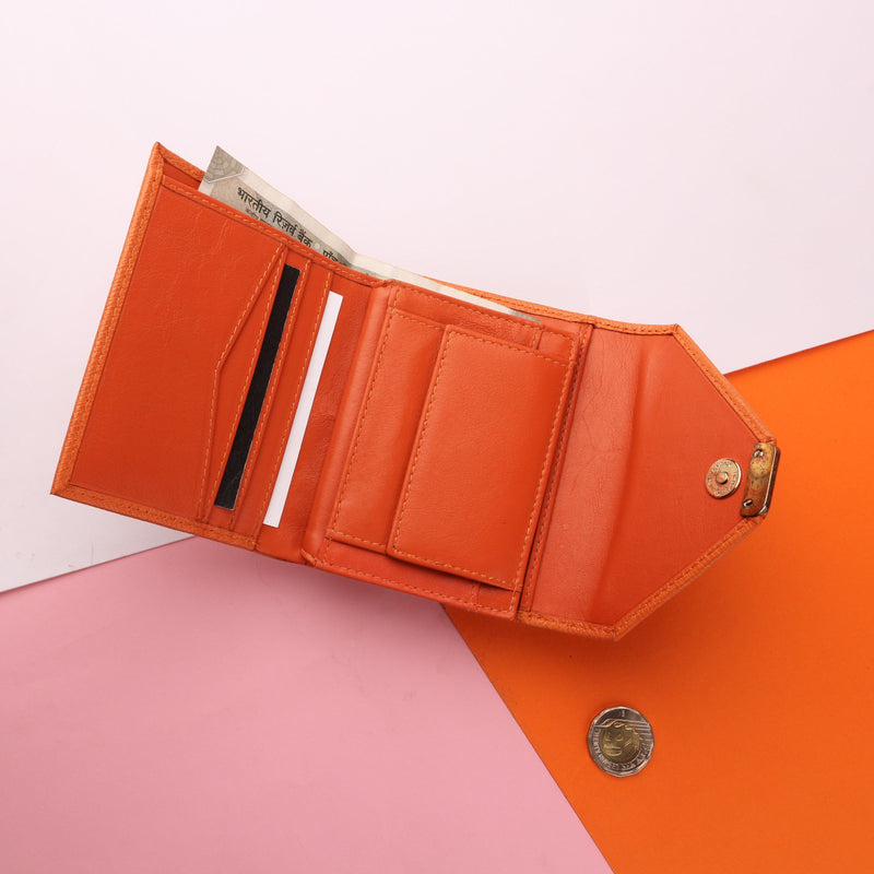 Keva Ladies Wallet | Saffiano Leather Wallet for Women | 100% Genuine Leather | Color: Cognac, Orange, Pink & Blue