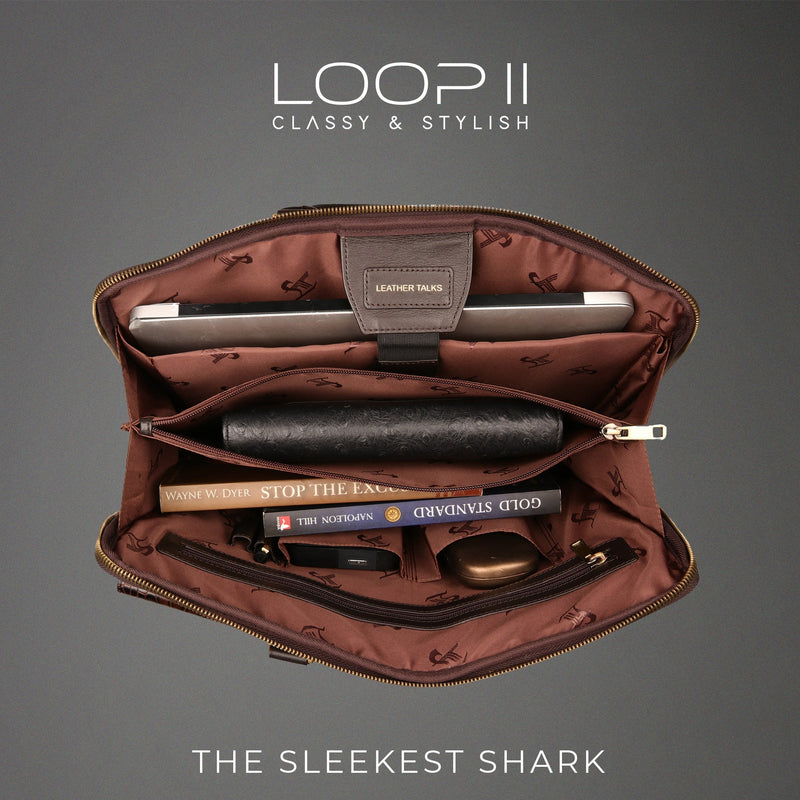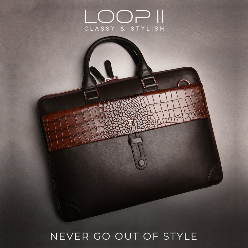 Loop II | Premium Leather Laptop Bag for Men | Luxury Office Bag | Handcrafted Genuine Leather | Color: Brown