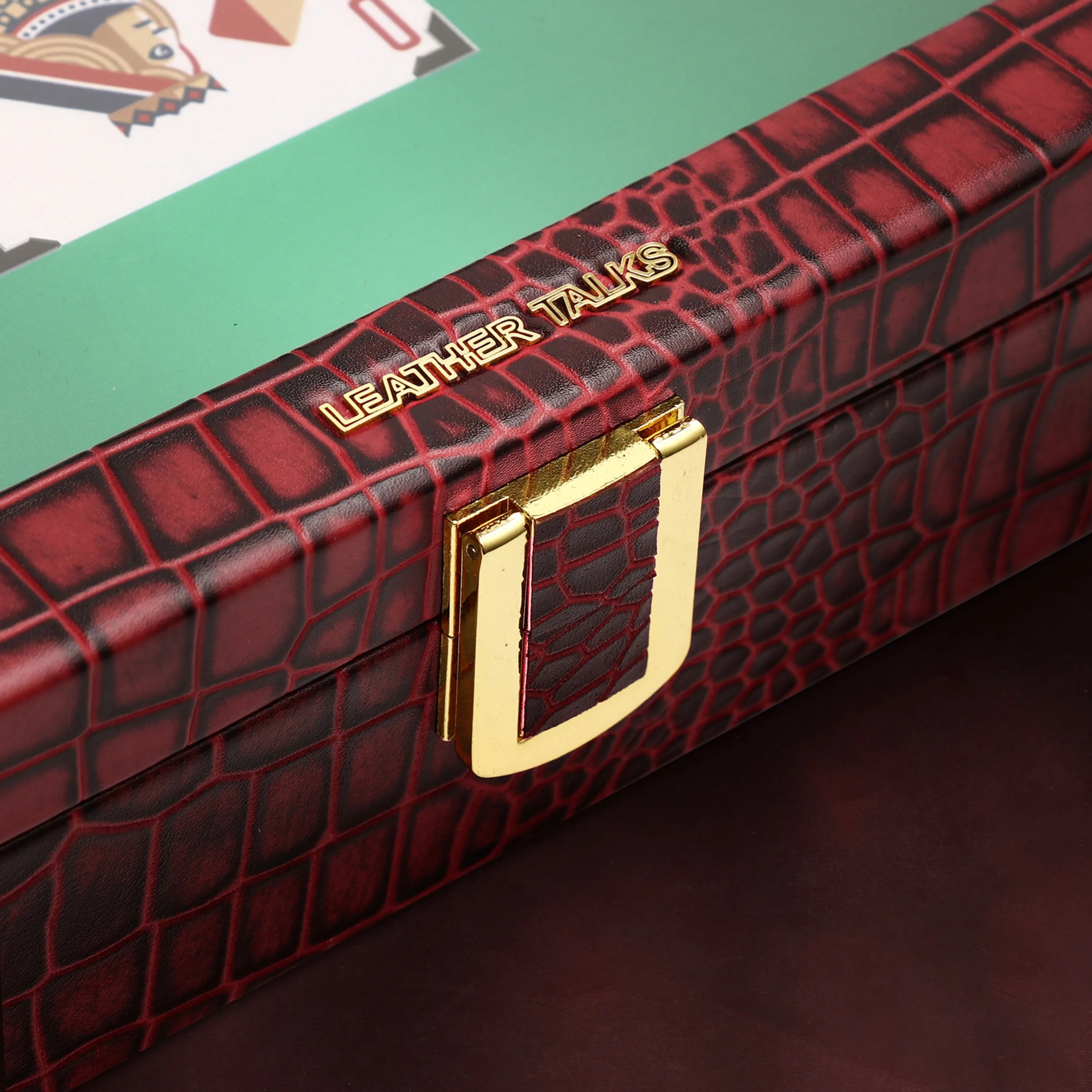 Luxury Genuine Leather Poker Box | Premium Poker Chip & Card Set | Color: Cherry