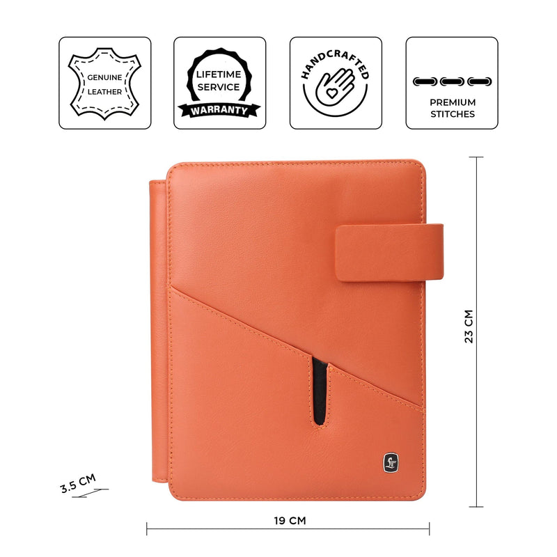 Melunge Genuine Leather Notebook | Luxury Leather Diary & Writing Journal for Office & Travel | Color: Orange