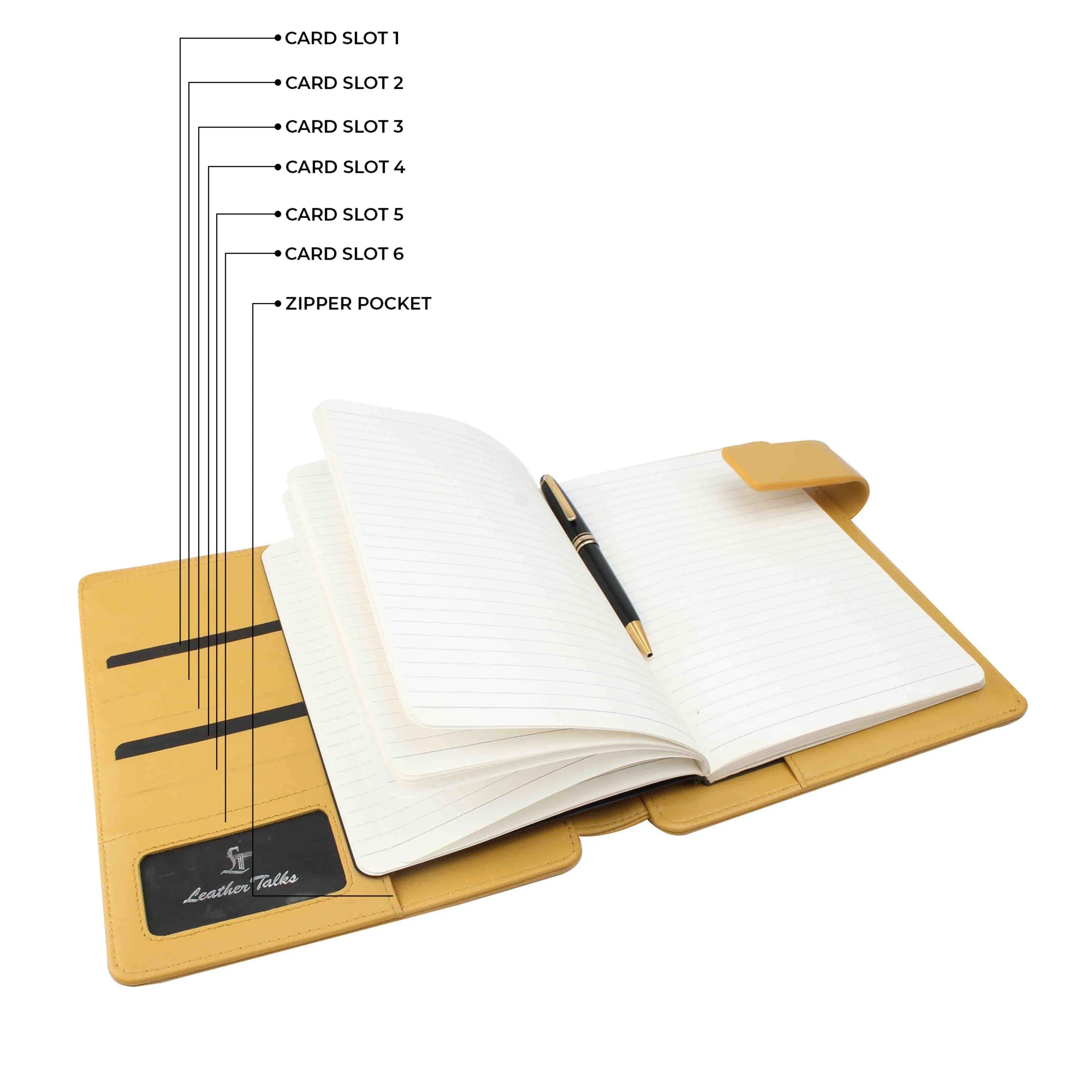 Melunge Premium Genuine Leather Diary for Men & Women | Refillable Leather Notebook & Journal | Color - Yellow