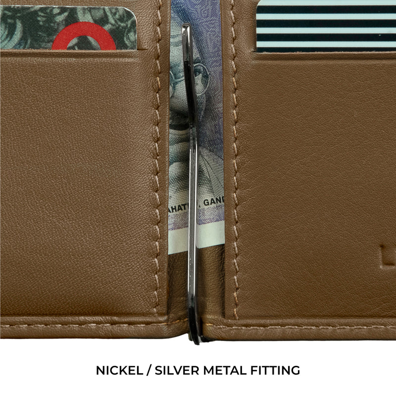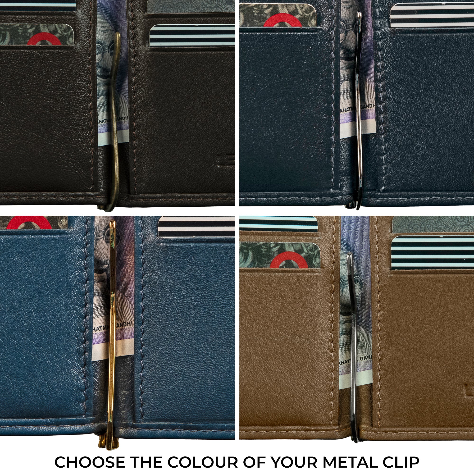 Elevate your everyday essentials with our Men's Leather Money-Clip Wallet. Designed for the modern minimalist, this sleek and stylish wallet provides a secure and efficient way to carry your cash and cards. Made from premium softy leather, it promises unmatched durability while maintaining a sophisticated appearance. The slim design fits effortlessly into your pocket, while the sturdy metal money clip ensures your bills stay neatly tucked away. Perfect for the gentleman who values style, functionality, and security.