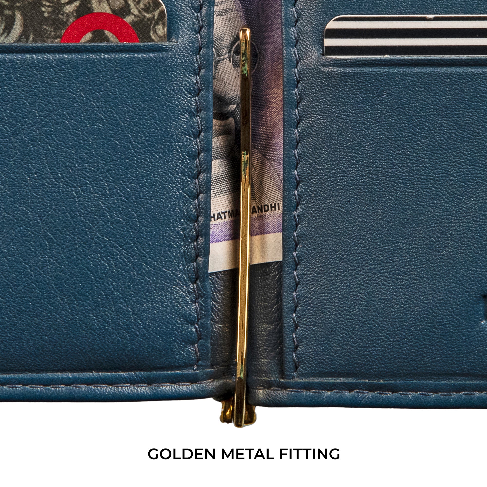 Leather Money Clip Wallet | Bifold Card Holder | Color- Navy Blue