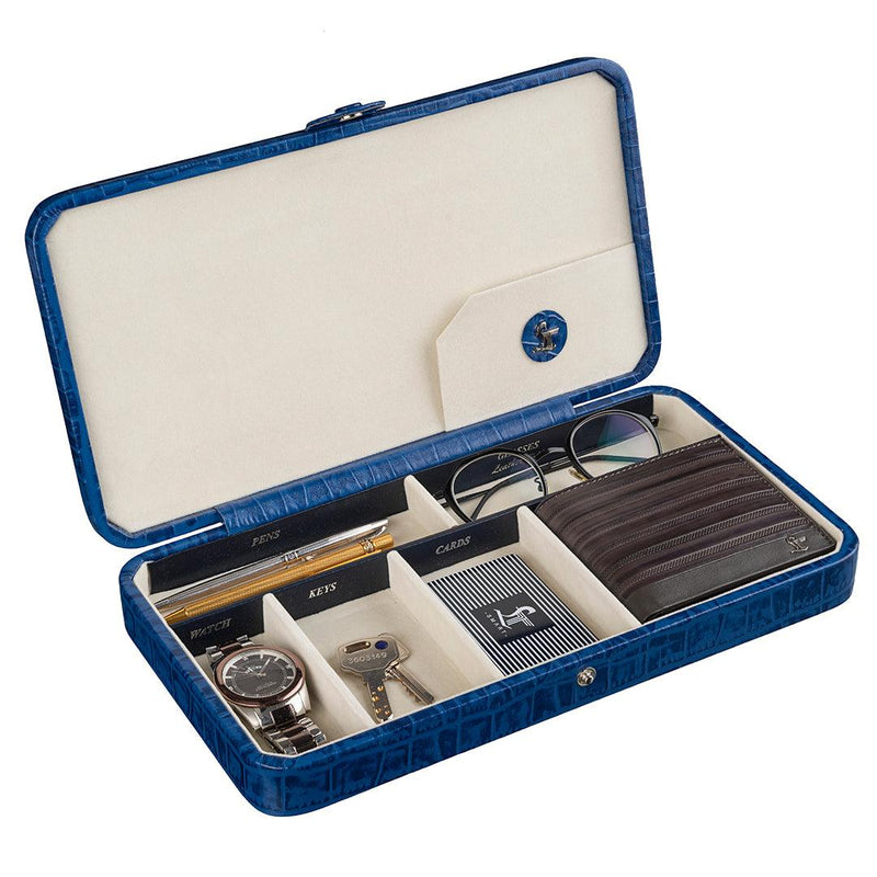 Pocket Changer II | Desk Organizer for Office Table, Desks & Study 100% Genuine Leather Multi-Purpose Tray Travel Case With 6 Compartments | Wallet | Keys | Pen |Cards | Sunglasses & Watches (Croco Blue)