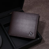 Italian Small Weave Embossed Genuine Leather Wallet for Men, expertly crafted from premium-quality genuine leather. This wallet combines style with functionality, featuring a luxurious small weave embossed texture that offers both durability and sophistication. Perfect for daily use or special occasions, it provides ample space to neatly organize your cash, cards, and coins, ensuring everything is easily accessible. The refined design complements any outfit, whether at the office or on a night out, adding an elegant touch to your look. Make a lasting impression with this timeless piece of craftsmanship.
