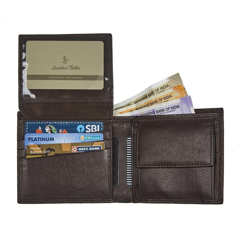 Italian Small Print Weave | Genuine Leather | Leather Wallet for Men | Color: Brown