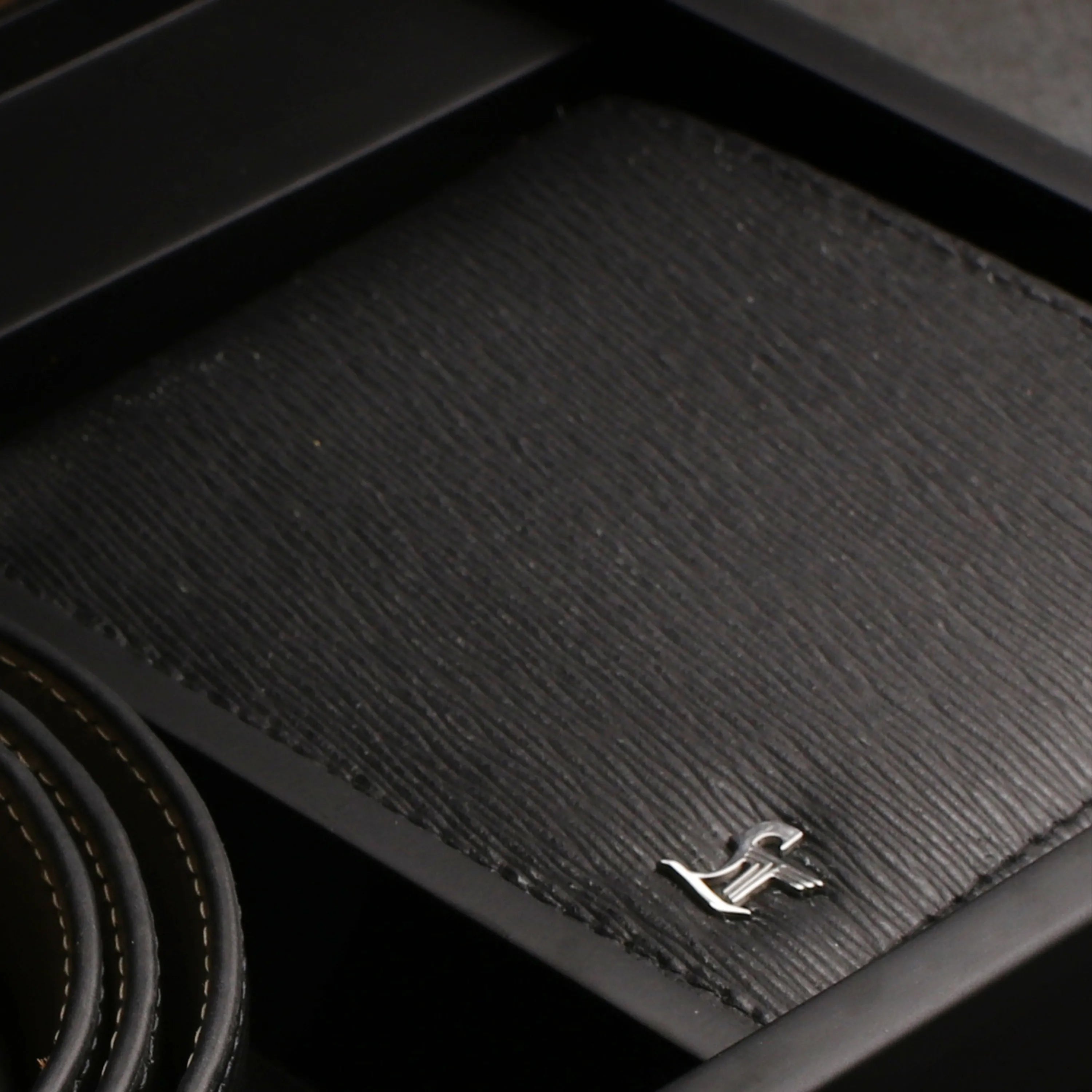 Premium Italian Wood Finish Leather Wallet & Belt Set | Wallet Belt Set with Wooden Gift Box | Colour: Black
