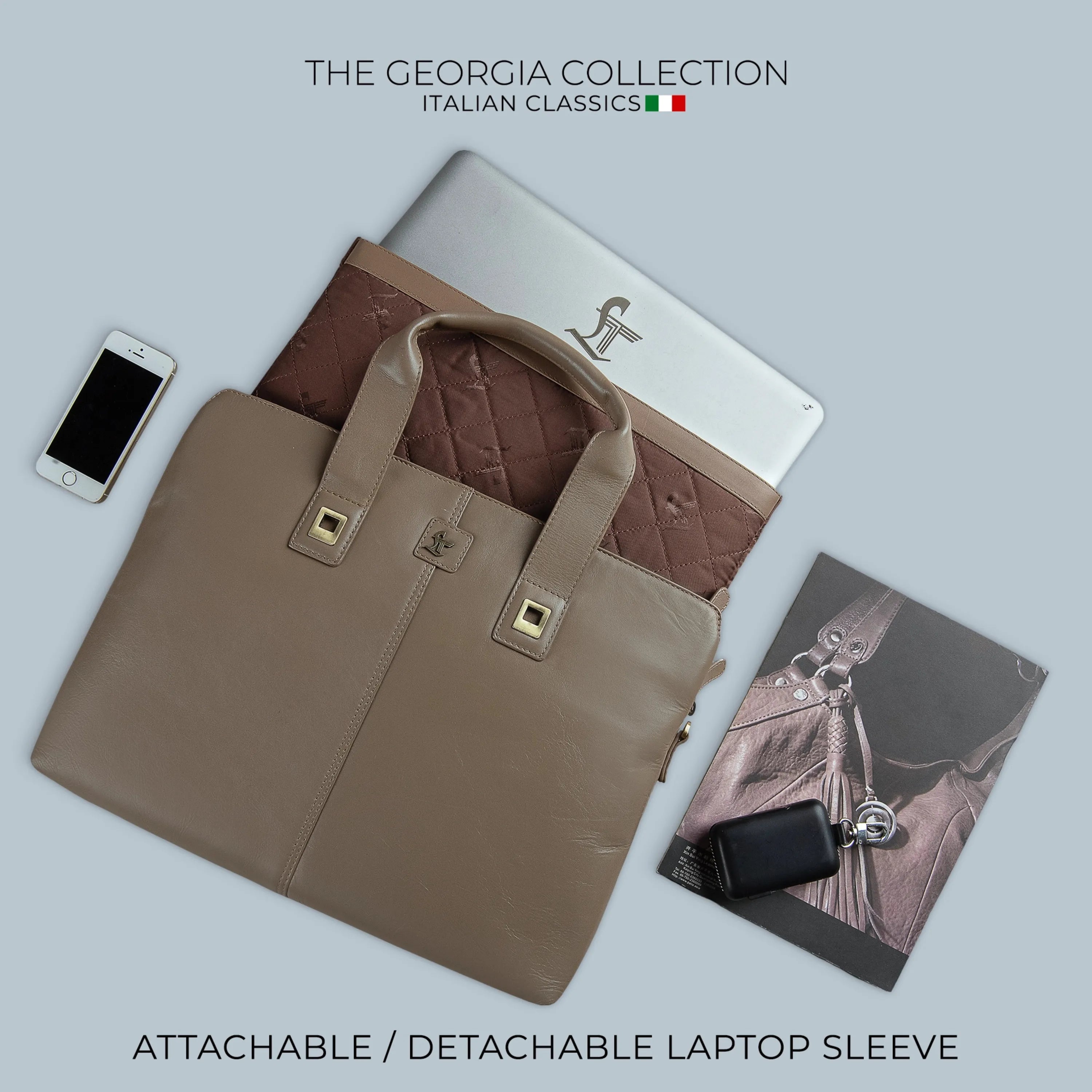 The Georgia Collection-Italian Classics is a Luxury Leather Laptop bag that combines timeless sophistication with modern functionality. It is handcrafted to be elegant and practical, catering to professional needs while making a style statement. Made from the finest quality Italian Leather, this bag is both opulent and durable. It goes beyond mere functionality, seamlessly blending luxury and utility to elevate your work ensemble.