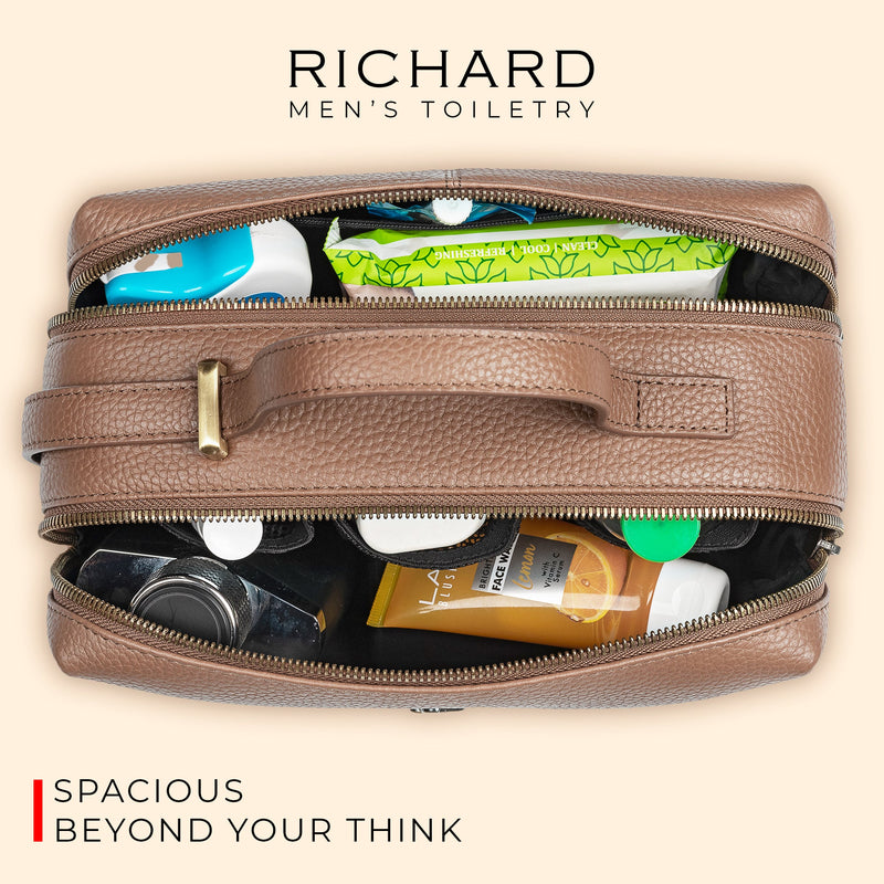 Richard's Leather Toiletry / Shaving Kit Bag For Men | For Carrying Grooming Essentials & Travel | In Black, Brown & Tan