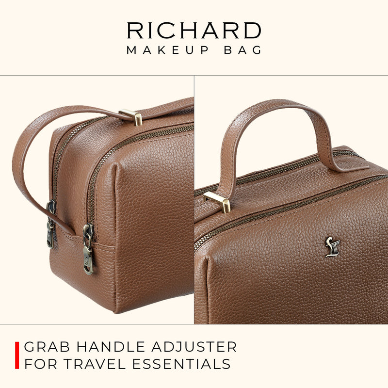 Richard's Genuine Leather Makeup Bag for Women | Makeup Organizer Bag | Cosmetic bag for Travel | color: Tan, Black, Blue, Brown, Green Sale priceRs. 3,595.00