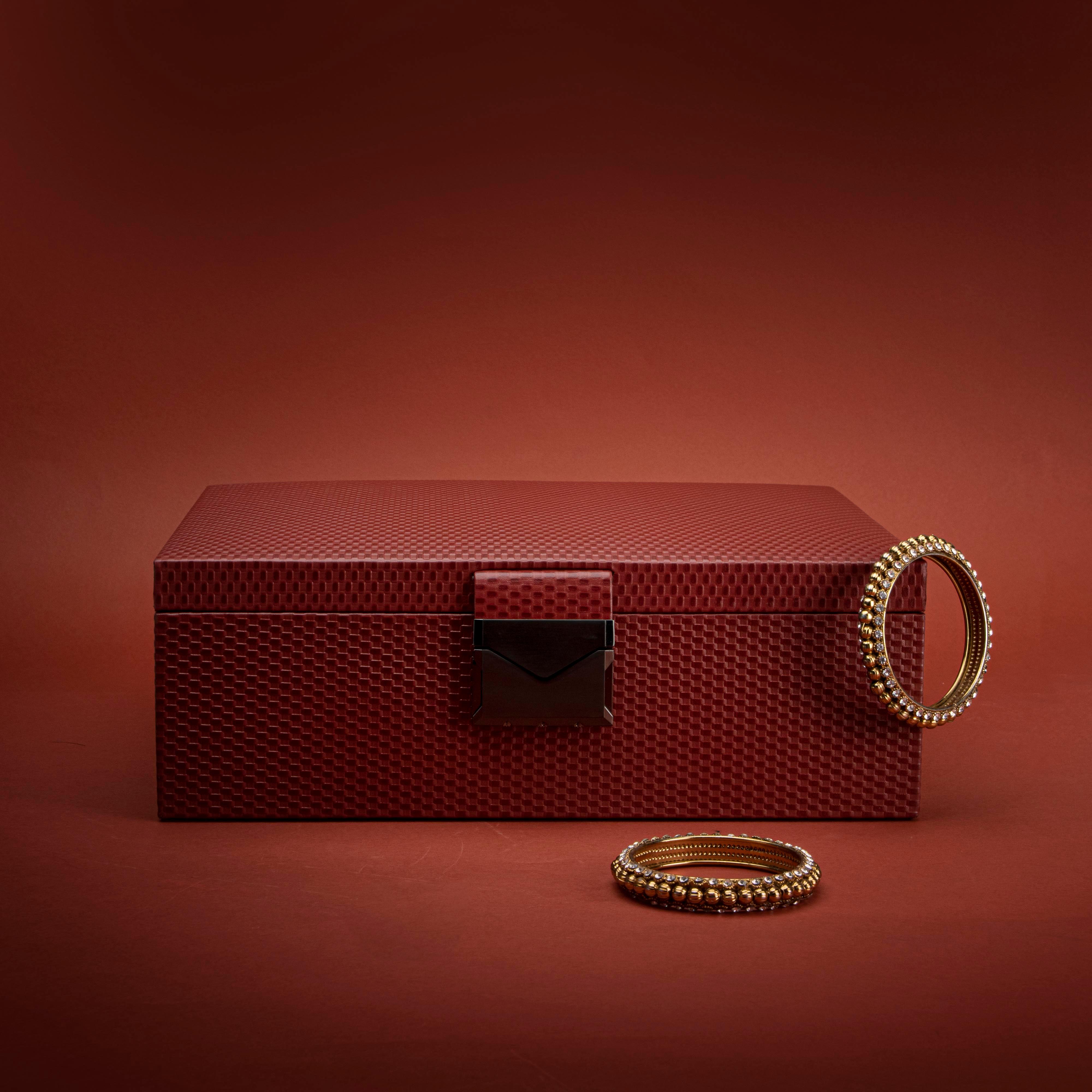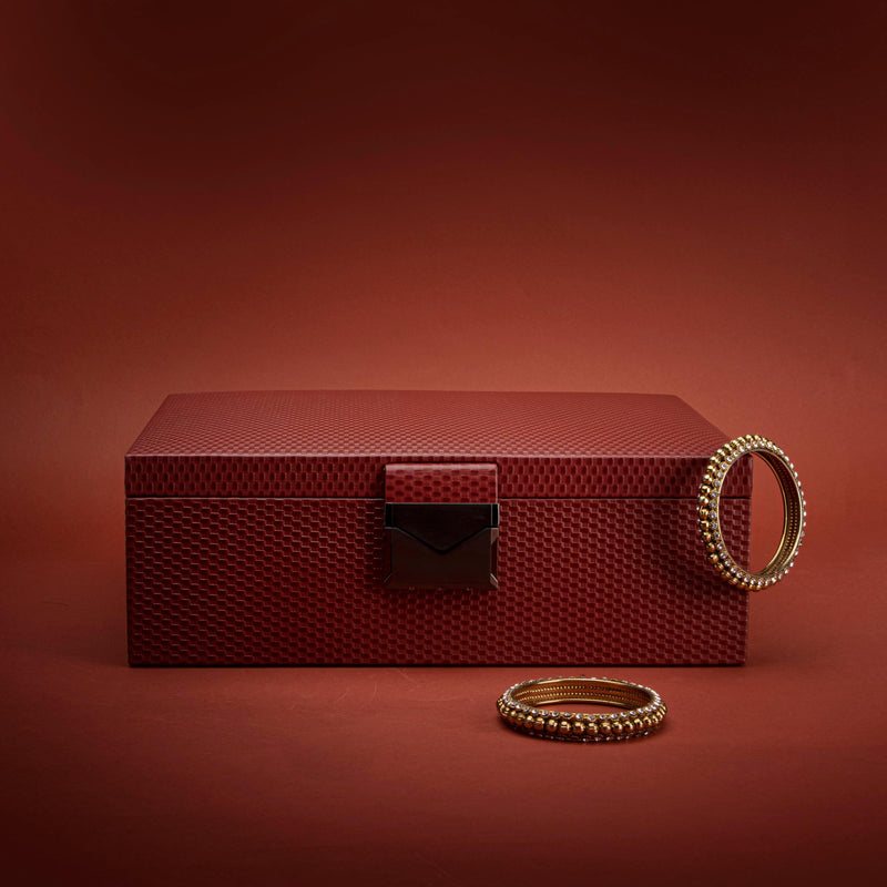 Royce Double Tray Jewellery Box | Premium Luxury Genuine Leather Jewellery Box | Elegant Organizer for Rings, Necklaces & Earrings | Color: Brick Cherry