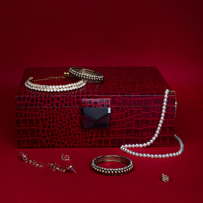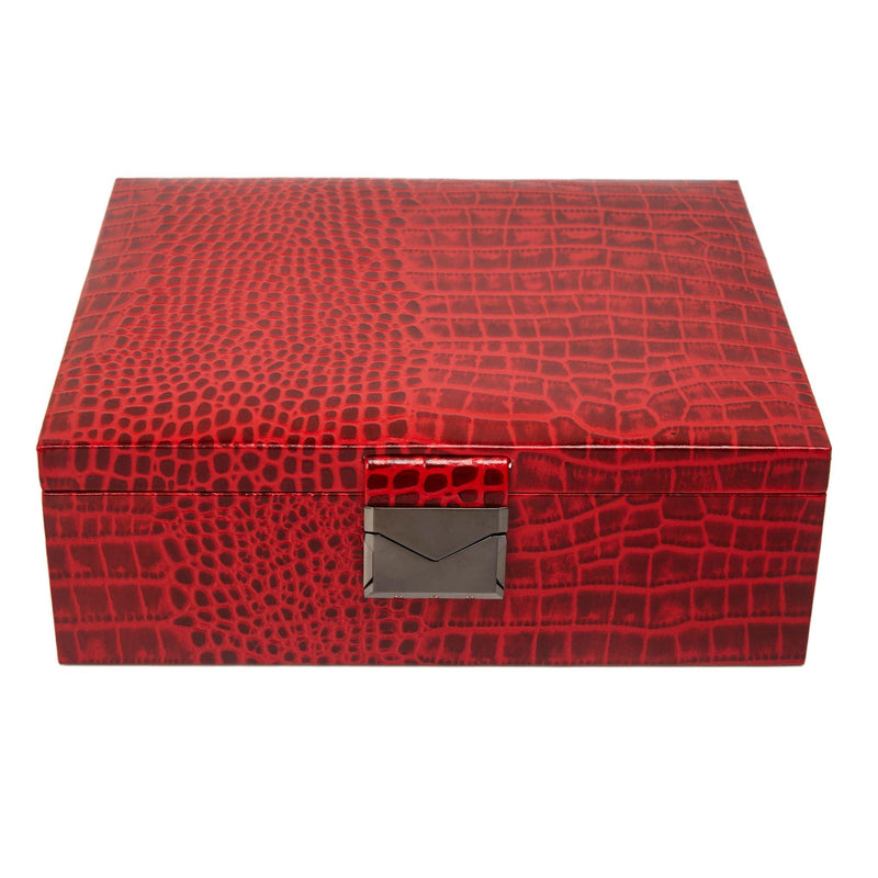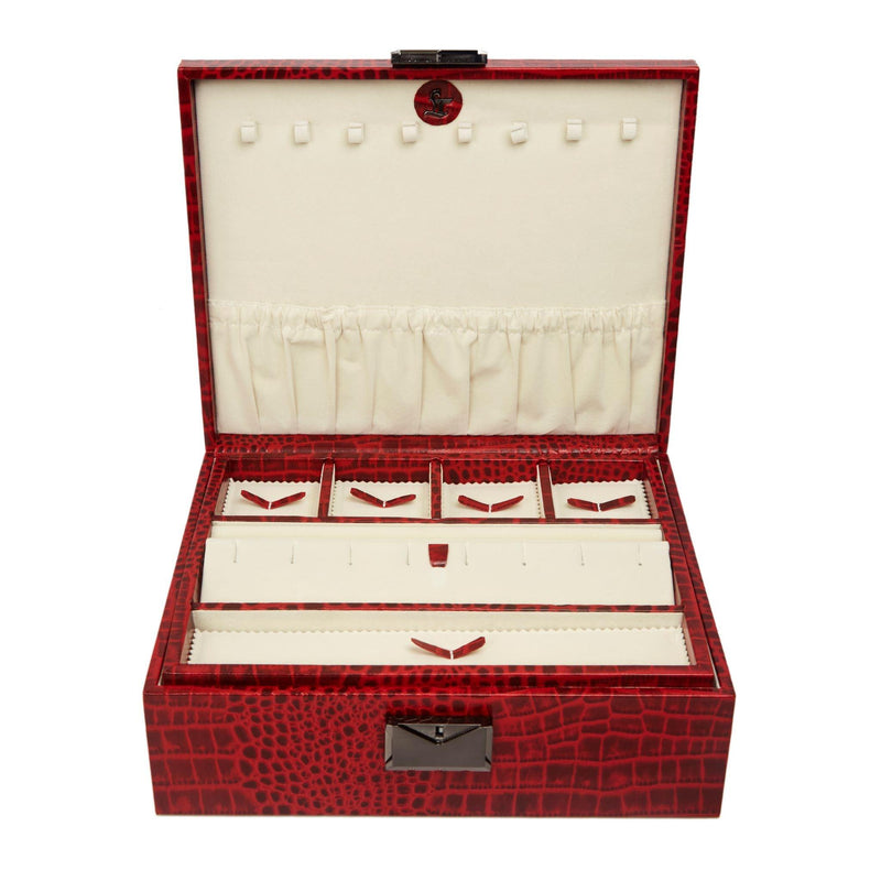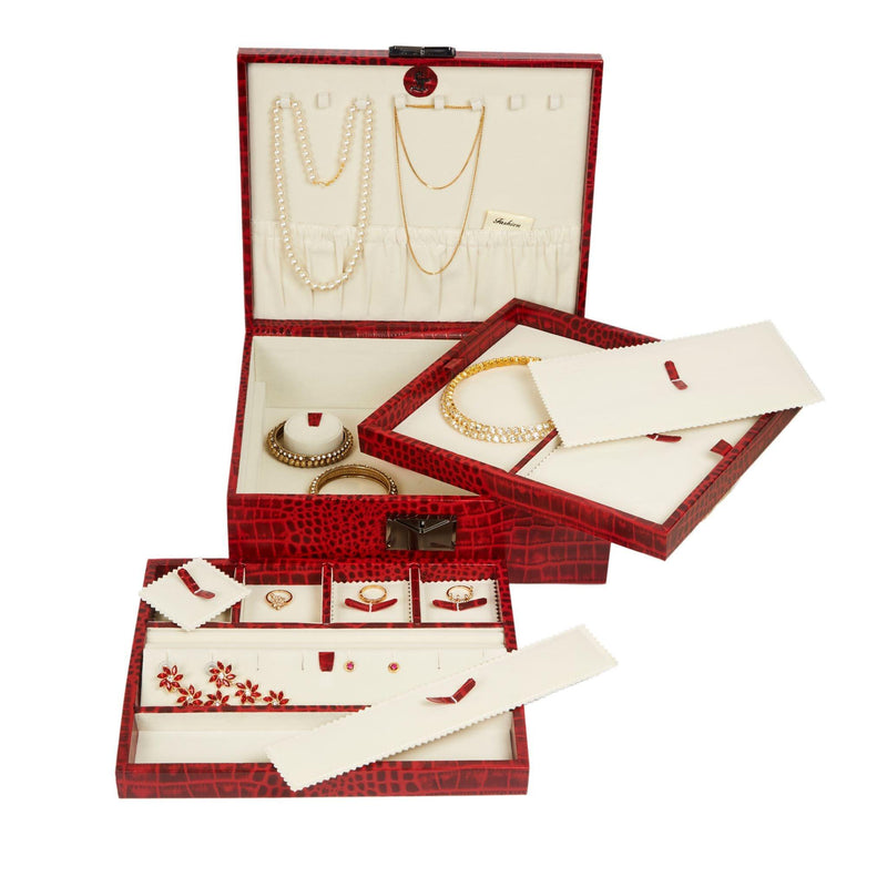 Royce Double Tray Jewellery Box | Luxury Genuine Leather Jewellery Box for Women | Elegant Organizer for Rings, Necklaces & Earrings | Color: Croco Red
