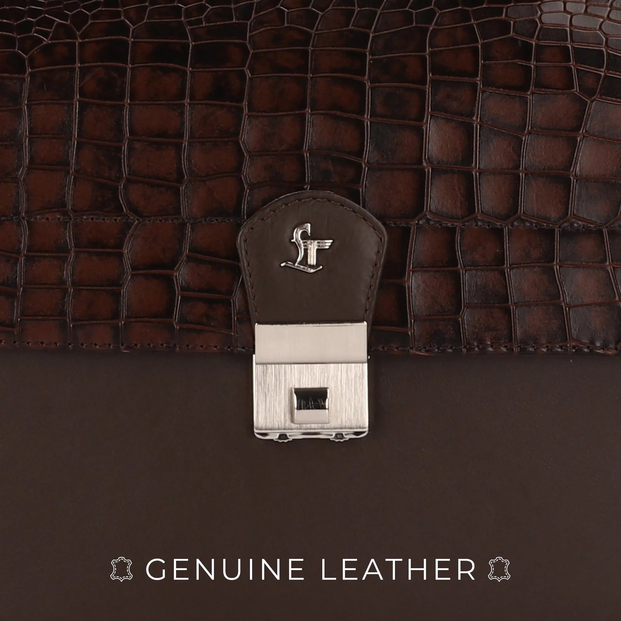 Ruvido II Luxury Leather Laptop Bag for Men | 15" Laptop Office Bag | Premium Leather Laptop Bag for Professionals | Color: Brown