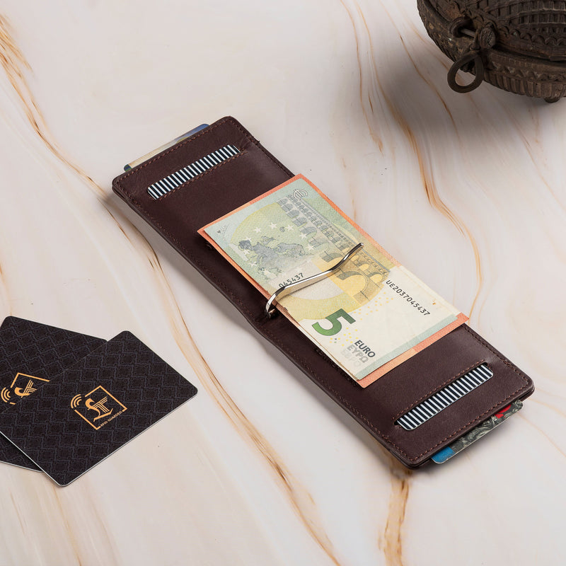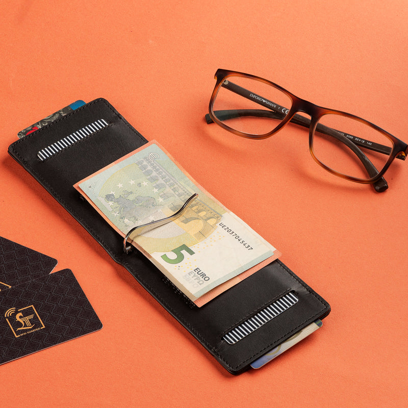 Slim Money Clip Wallet | Luxury Leather Wallet for Men | Color: Black & Cherry