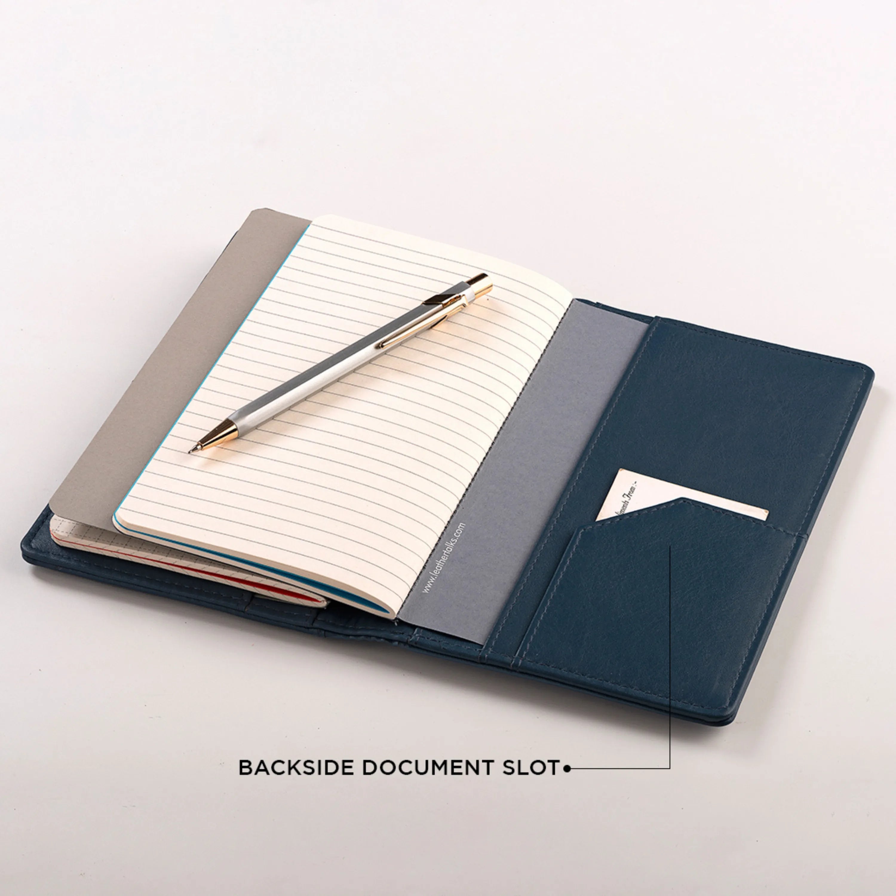 The Mini Melunge Premium Genuine Leather Notebook | Refillable Journal | Luxury Diary for Professionals | Color: Blue