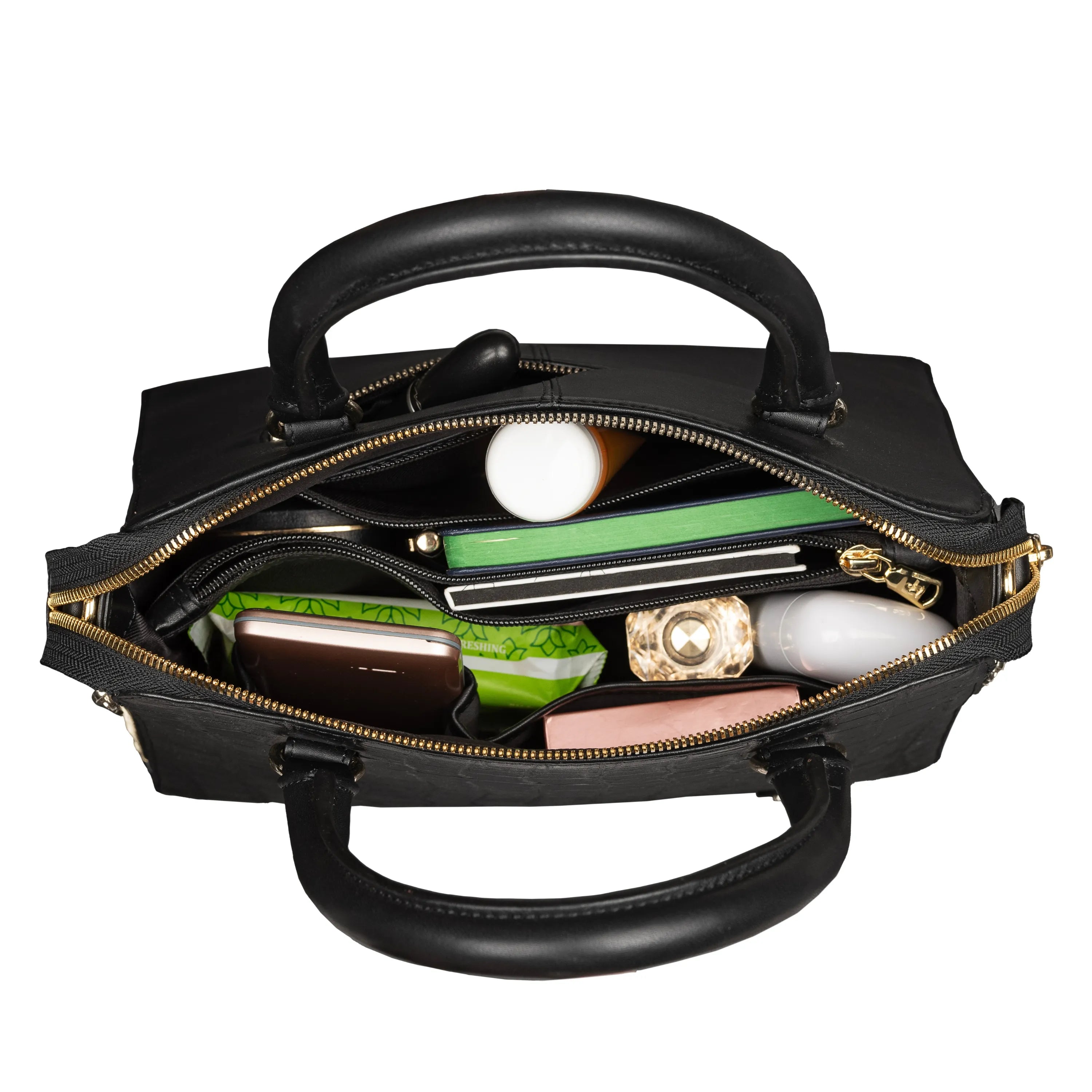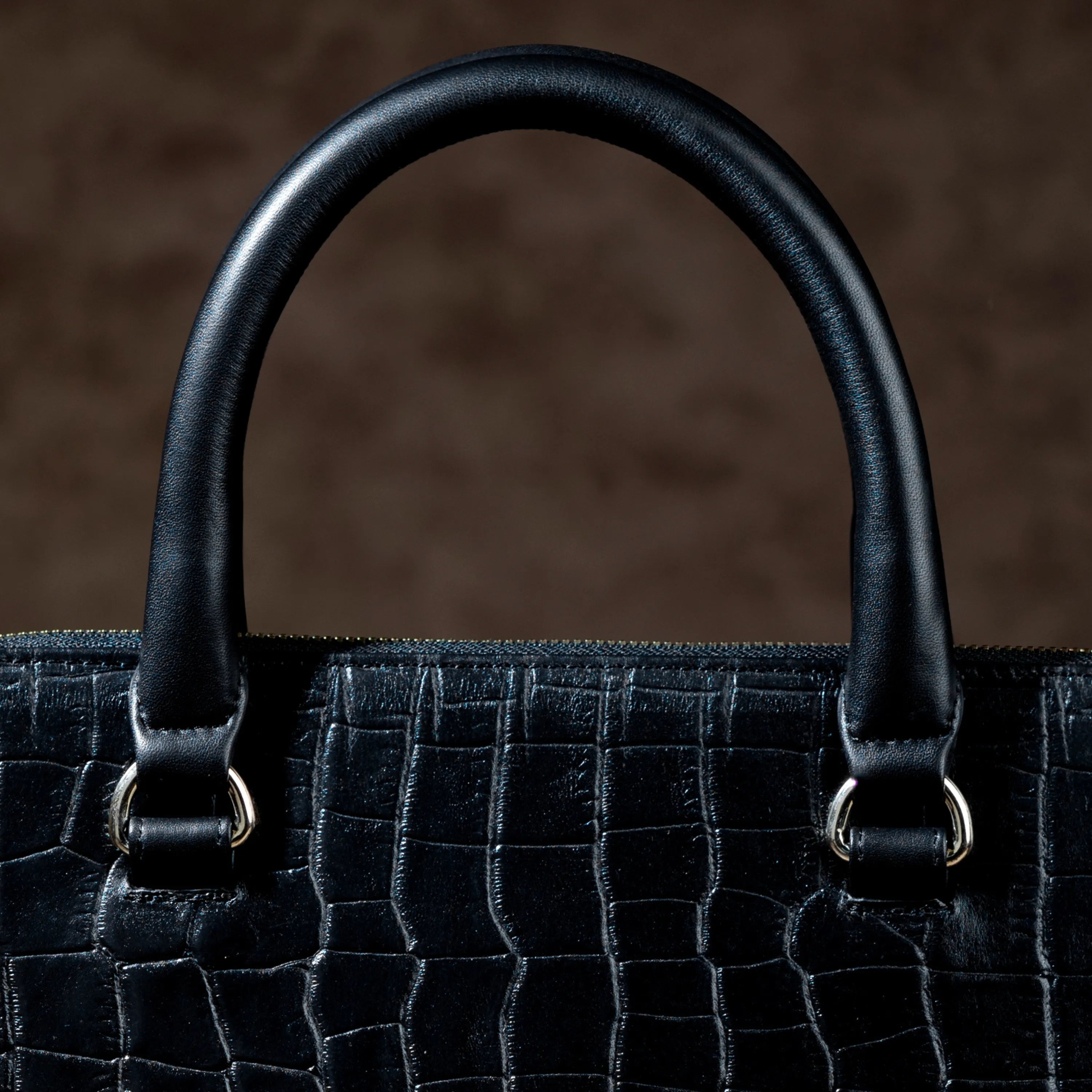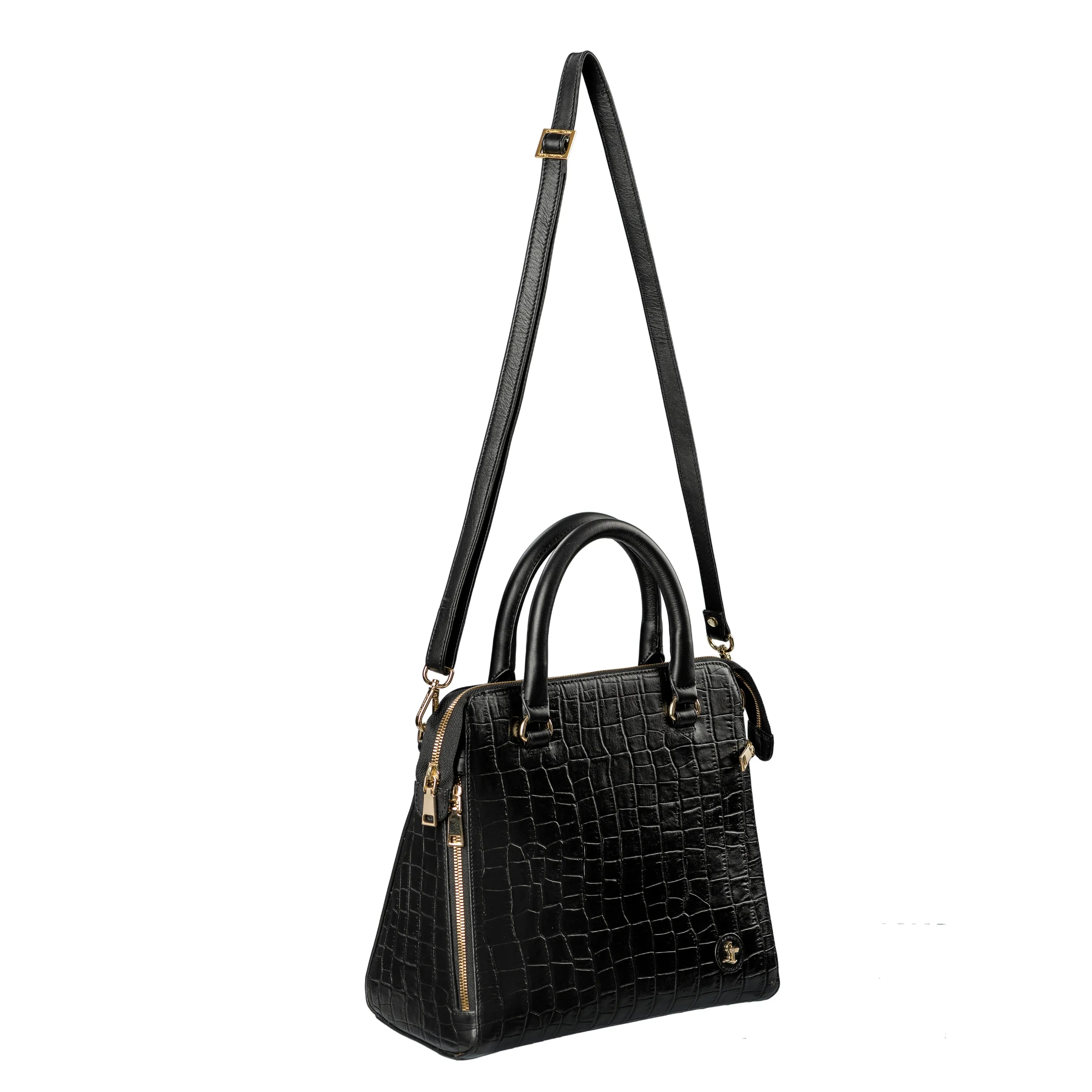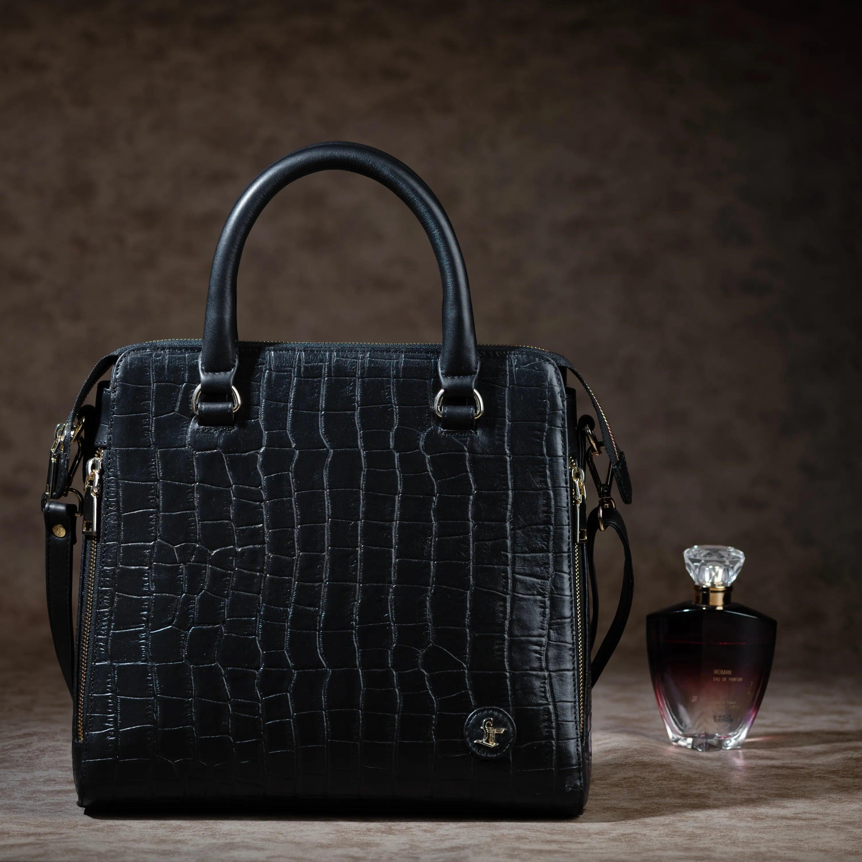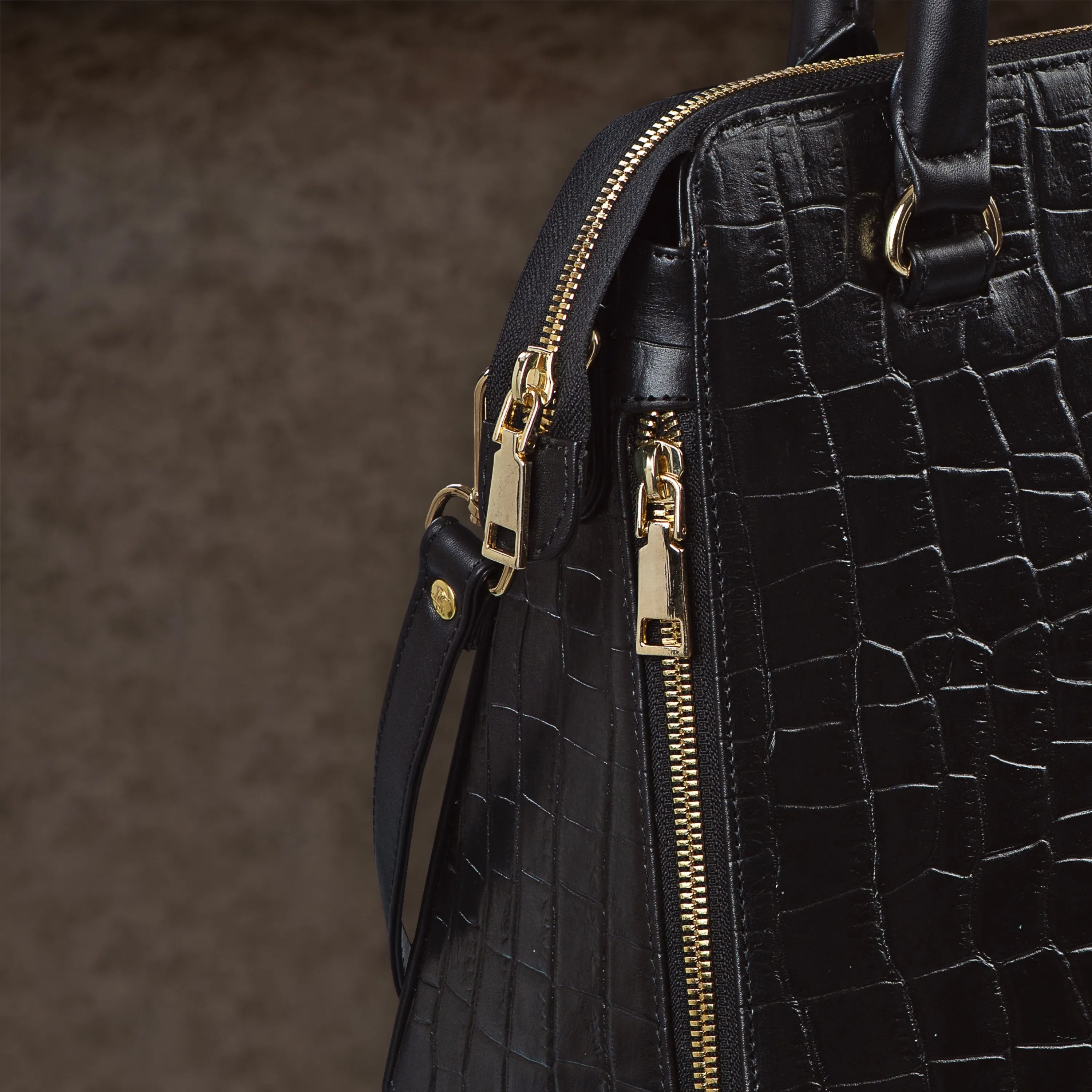 This satchel hand bag is a paragon of functional elegance and sophistication. It is crafted with fine material and designed exquisitely to exude a captivating charm for onlookers. The polished hardware and sleek structure make it appealing and stand out, emitting an outer croc leather luxury. Your essentials are meant to remain in place within an interior that is also lined lavishly.