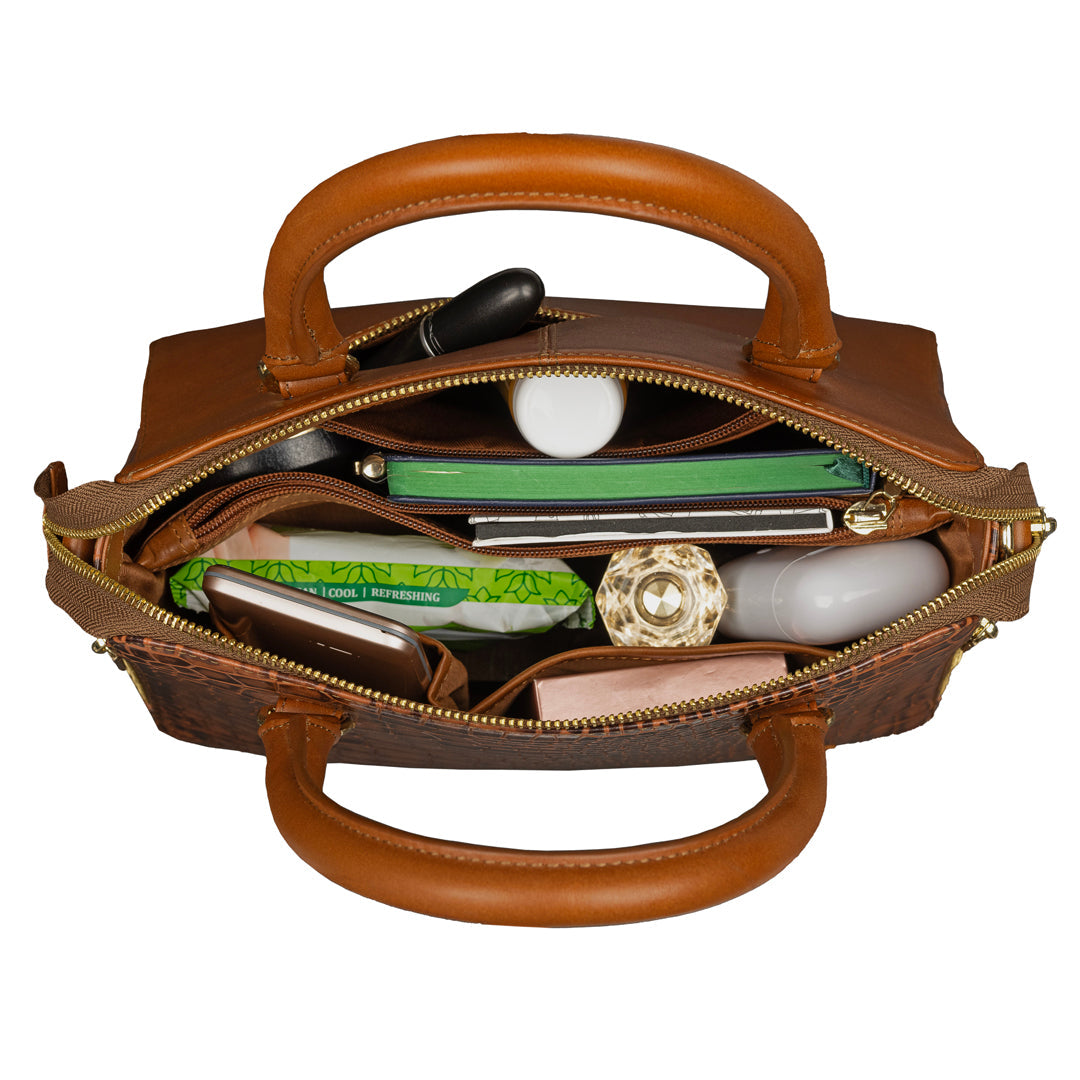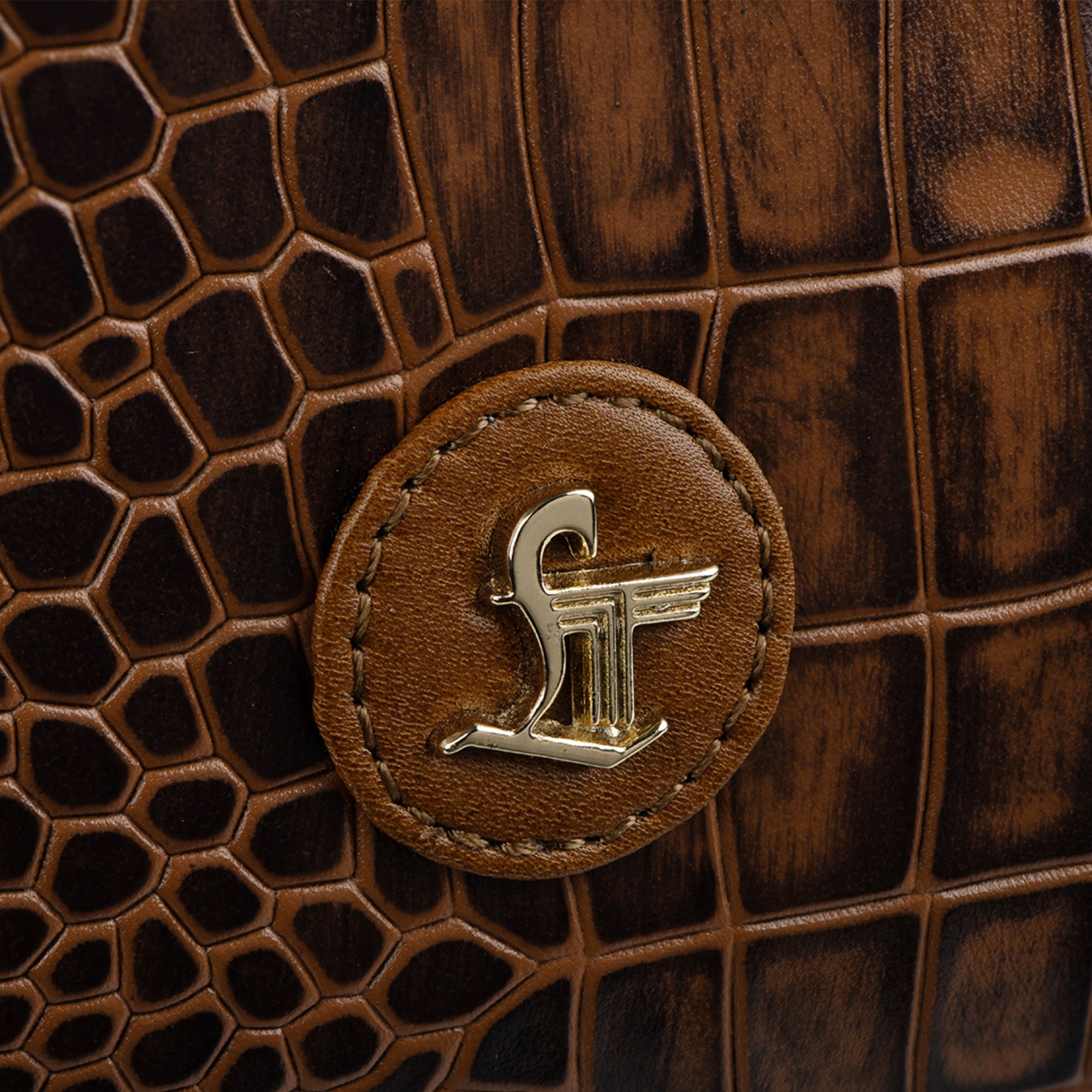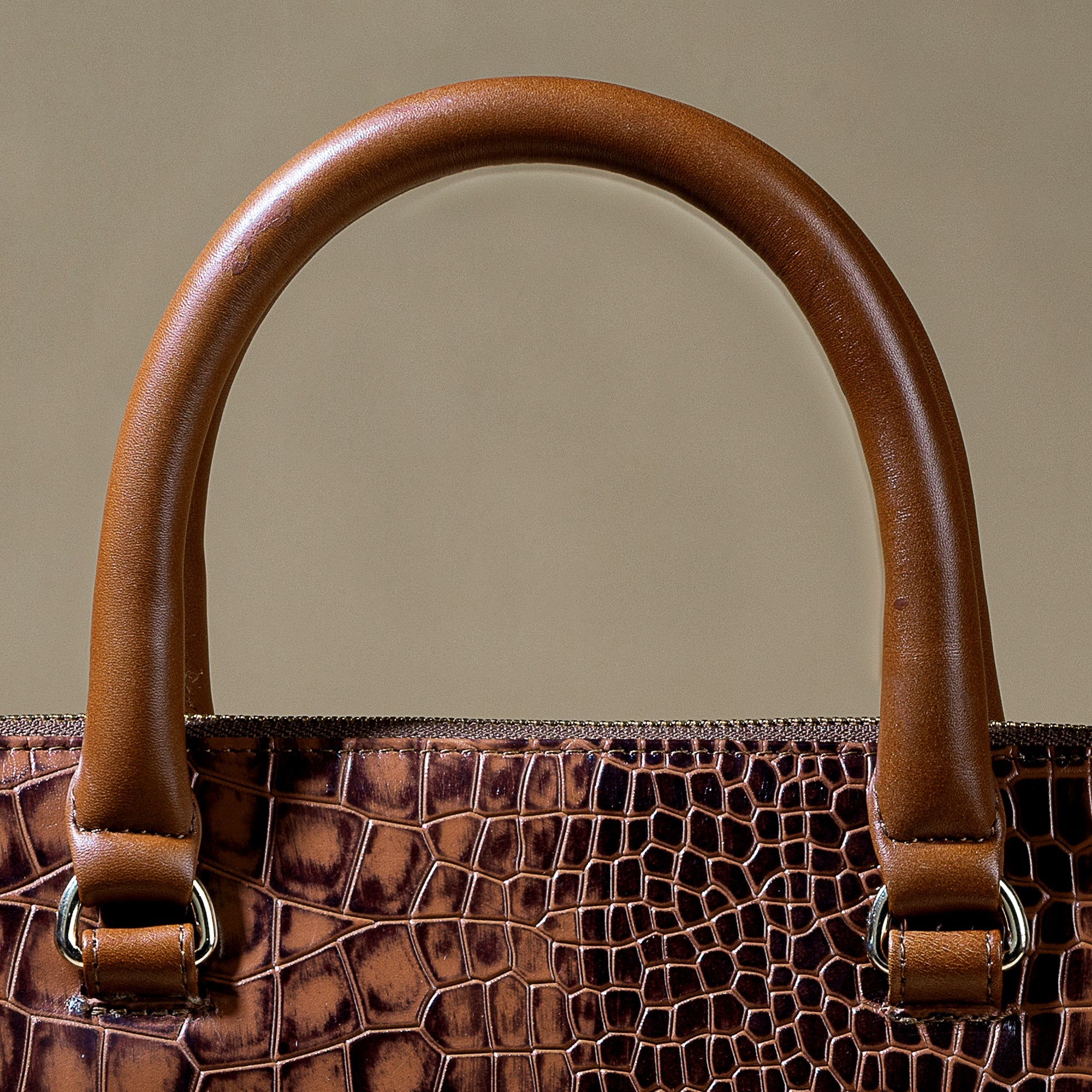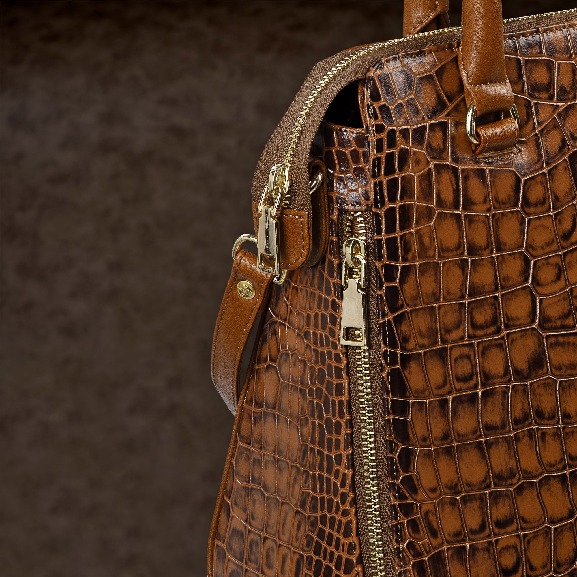 This satchel hand bag is a paragon of functional elegance and sophistication. It is crafted with fine material and designed exquisitely to exude a captivating charm for onlookers. The polished hardware and sleek structure make it appealing and stand out, emitting an outer croc leather luxury. Your essentials are meant to remain in place within an interior that is also lined lavishly.
