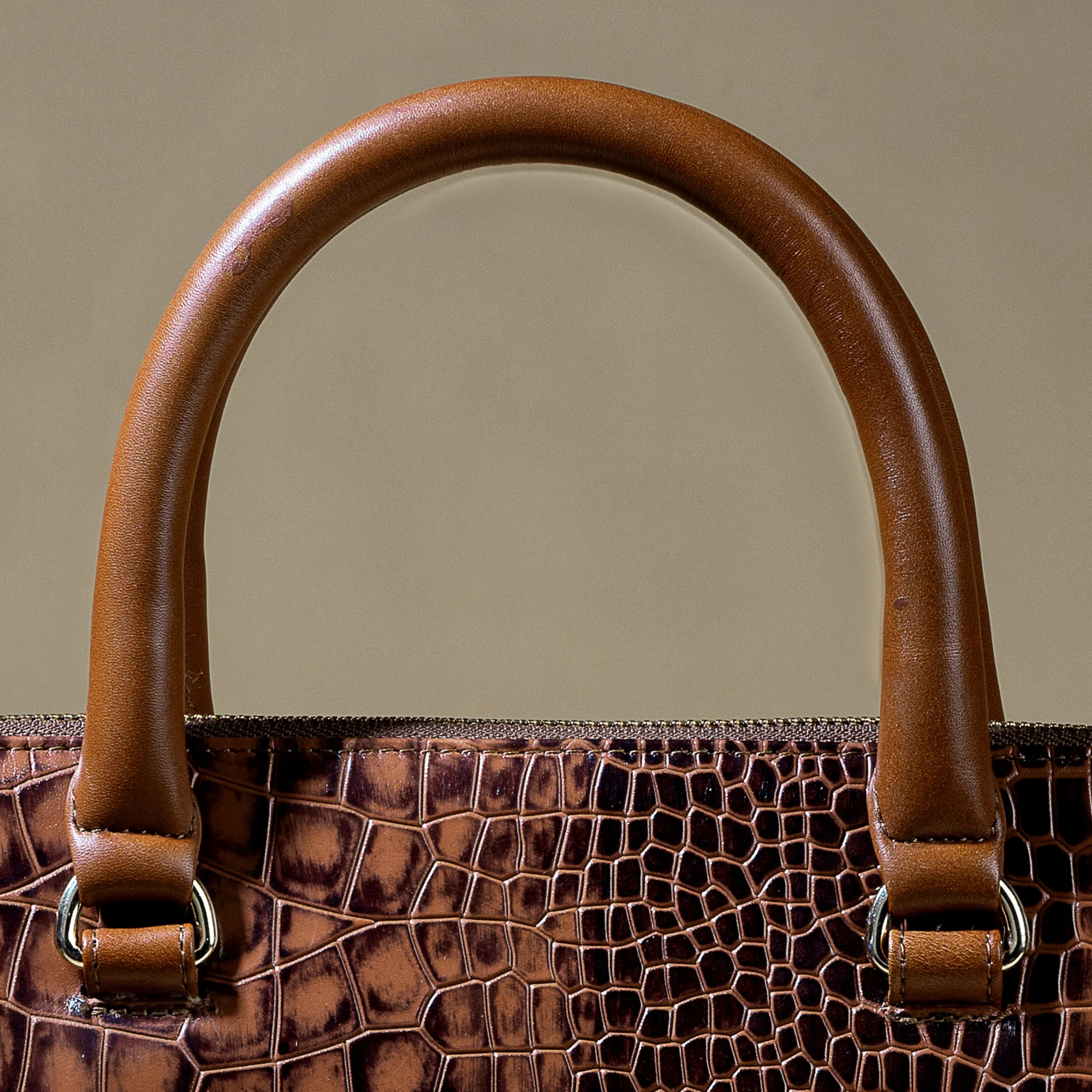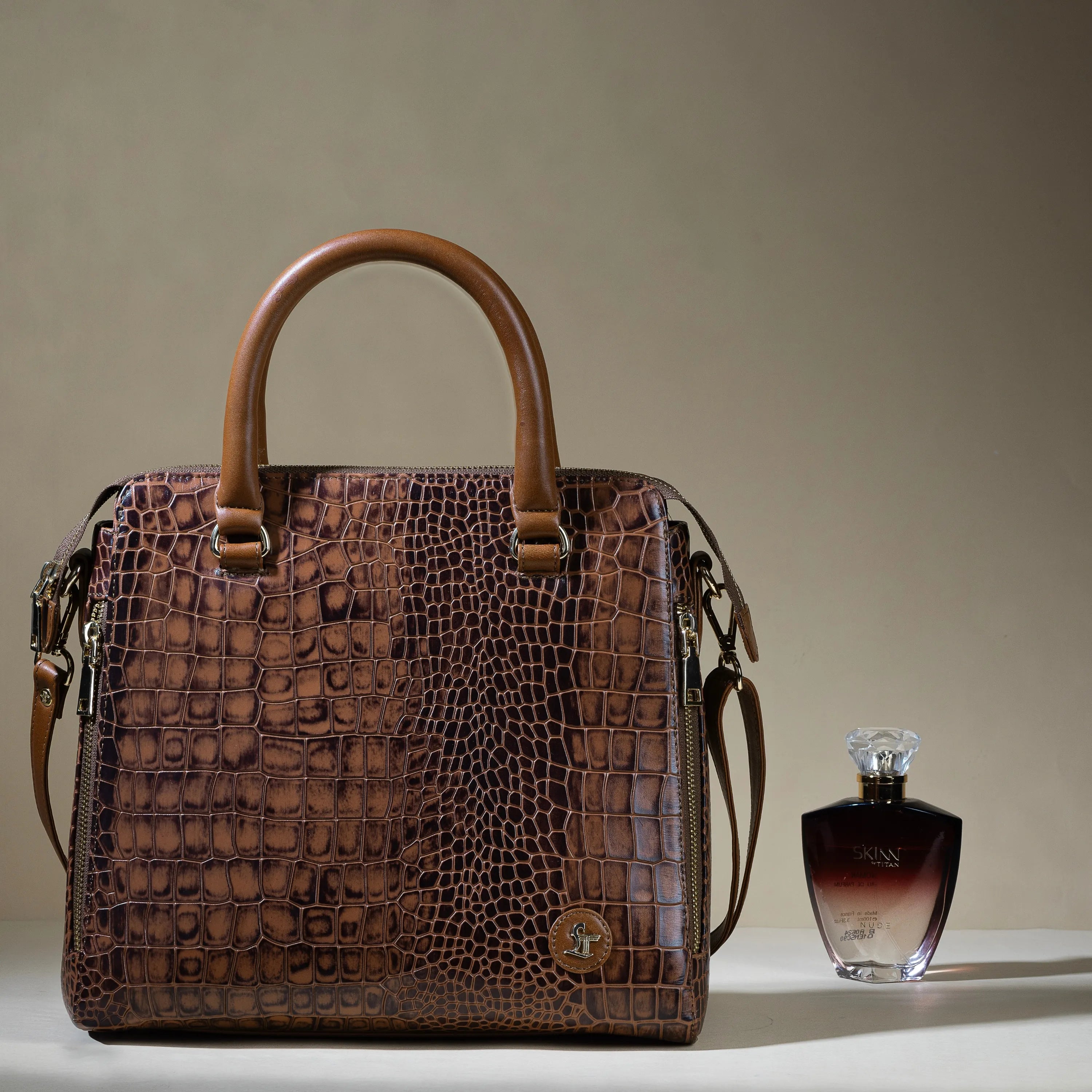 This satchel hand bag is a paragon of functional elegance and sophistication. It is crafted with fine material and designed exquisitely to exude a captivating charm for onlookers. The polished hardware and sleek structure make it appealing and stand out, emitting an outer croc leather luxury. Your essentials are meant to remain in place within an interior that is also lined lavishly.