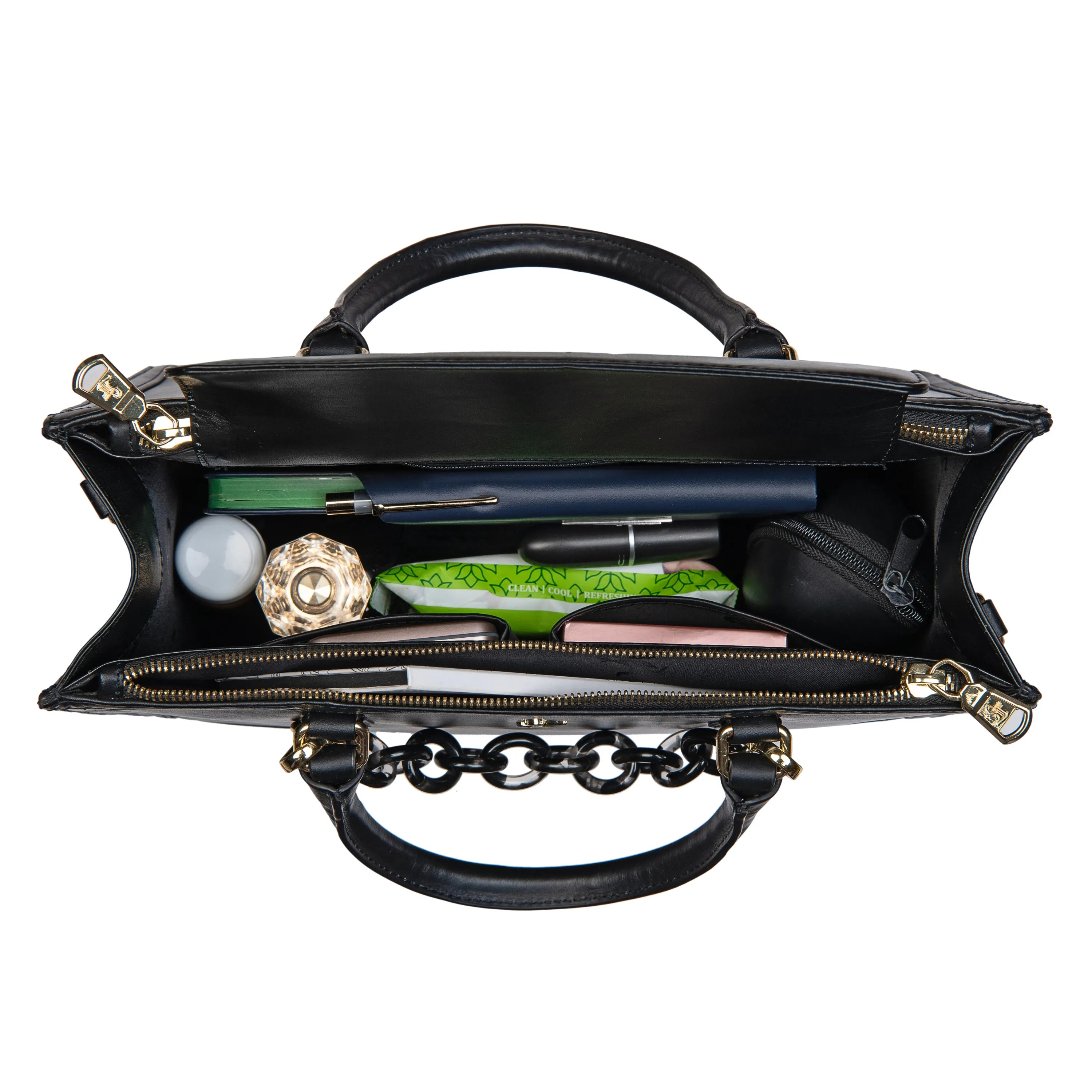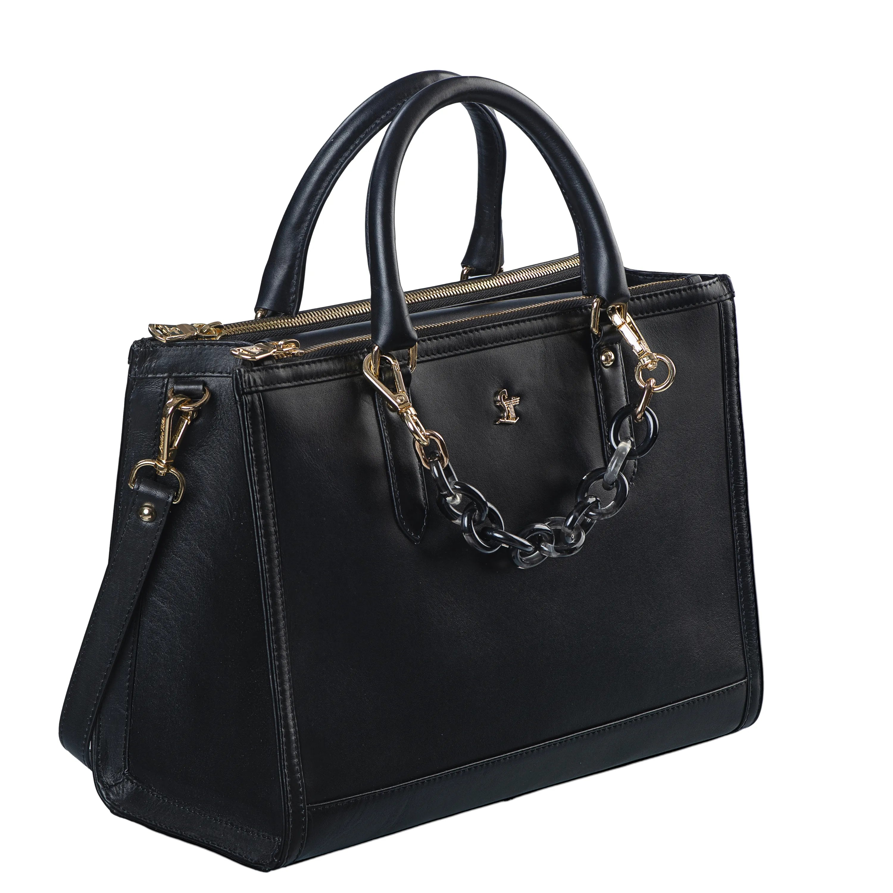 Window Sr. - Genuine Leather Handbag for Women | Premium Satchel Bags & Stylish Ladies Bags | Color: Black