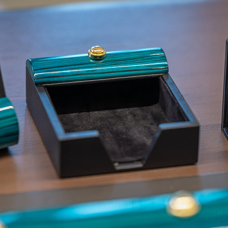 It is time you enhance the look of your desk with a luxurious and cohesive set. We present something that can make an office/study space look so much better! The wood-leather desktop planner set is a comprehensive solution that enhances organization, productivity, and appeal. It is a way to keep all your essentials- documents, visiting cards, stationary, and photos arranged neatly. It offers exceptional utility and is perfectly curated to keep your desk professional and tidy. It consists of six pieces- a planner, tray, desktop organizer, memo holder, business card holder, and photo frame. The subtle sheen of mahogany wood with its metal stud embellishments ties it all together, making this set reflect your personality and also professional finesse.
