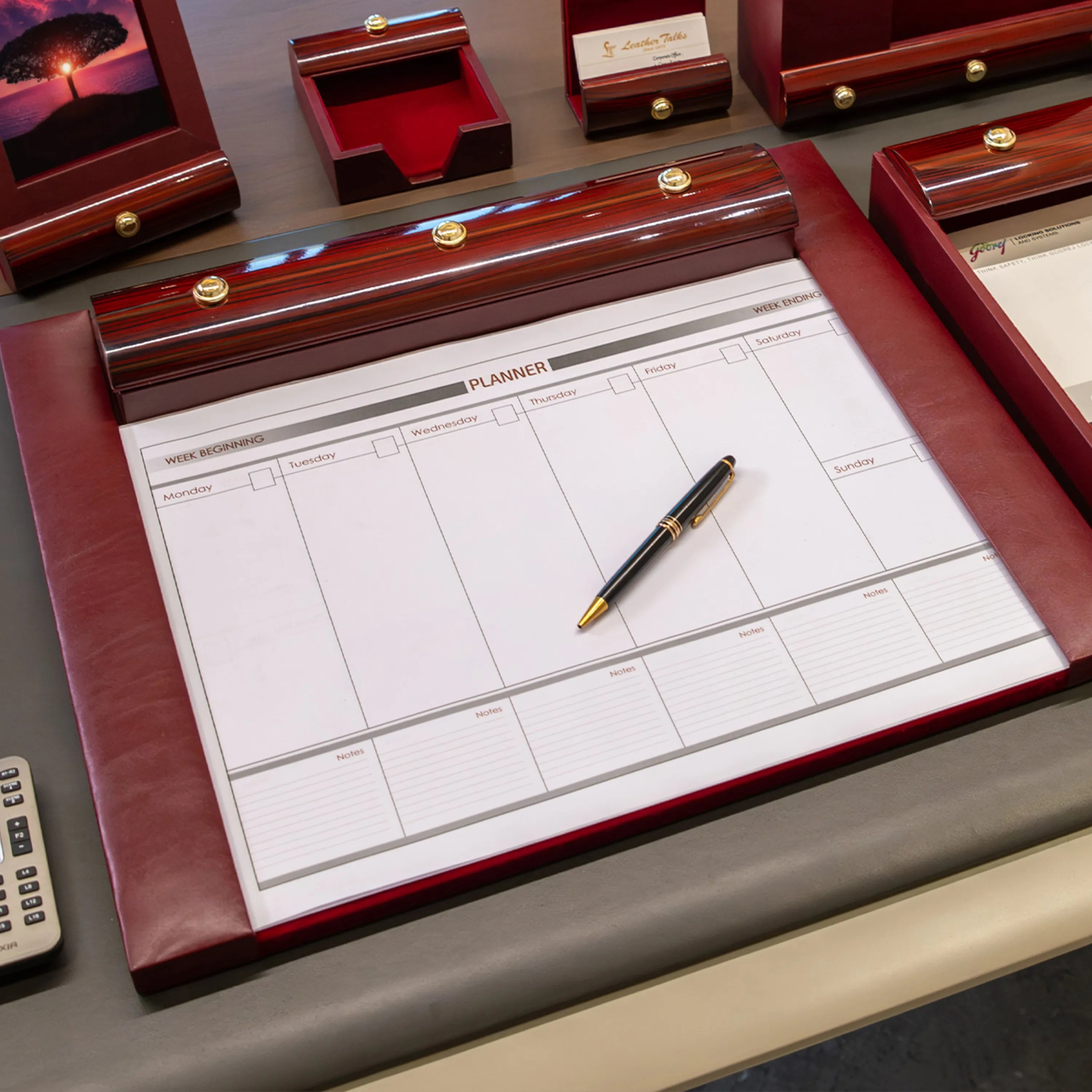 Wood Leather Desktop Planner | Color - Cherry with Cherry